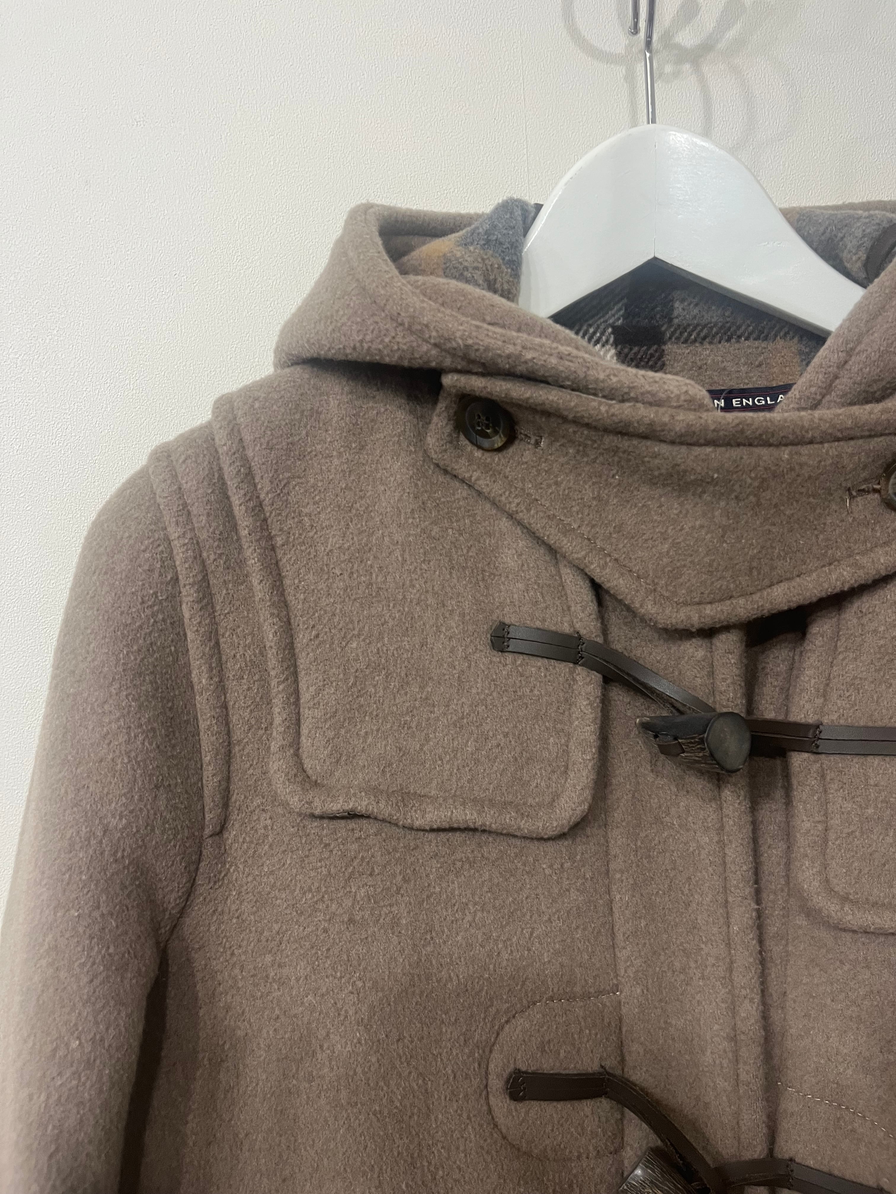 LONDON traditionのダッフルコートは、上質なモカカラーの生地で仕立てられたイングランド製のアイテムです。伝統的なデザインにこだわり、クラシックなスタイルにぴったりの一着です。