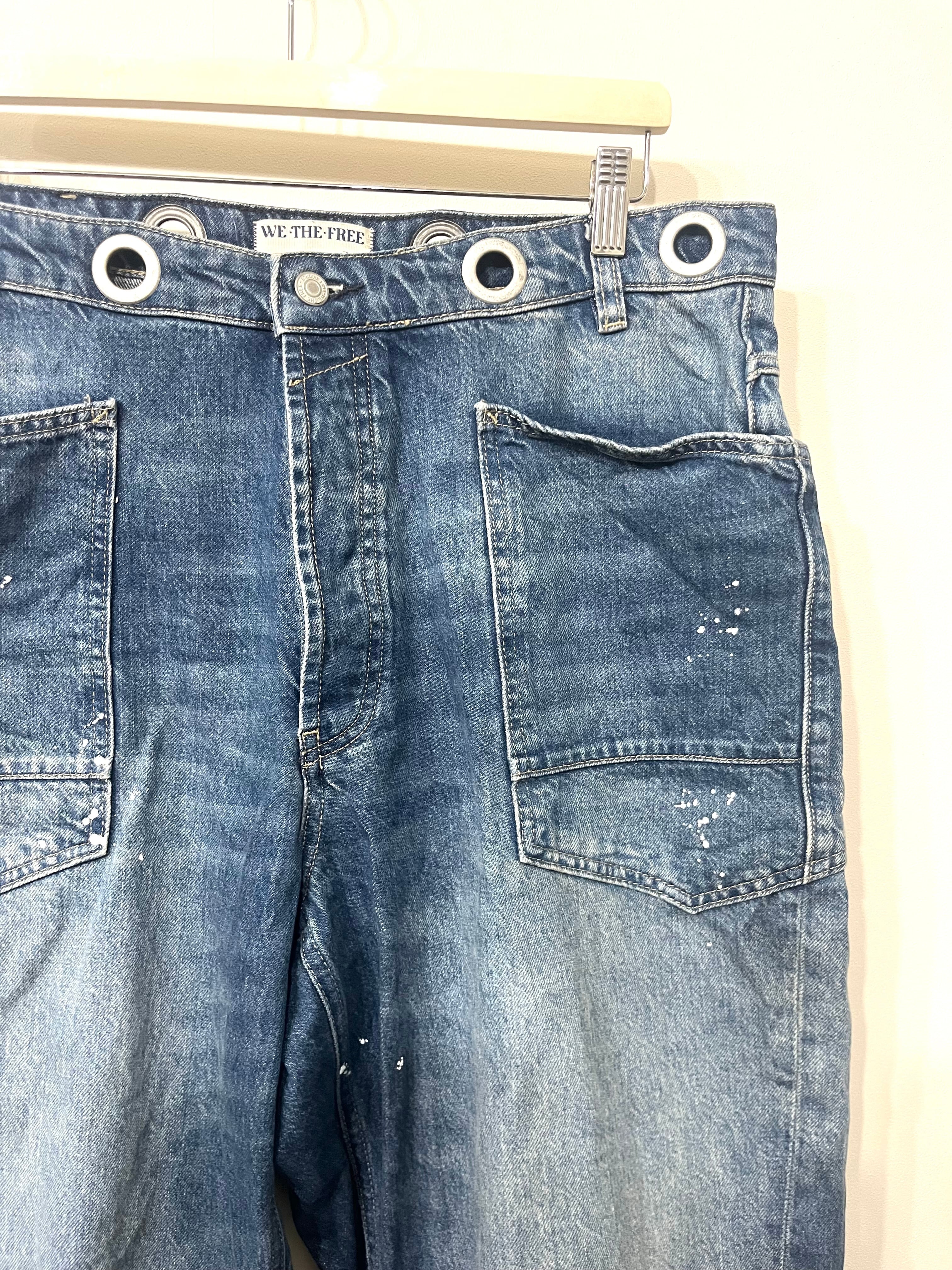 WE・THE・FREEのダメージ加工、ペンキ加工が施されたラウンドデニムパンツです。