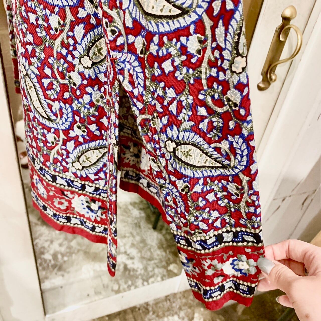 お色は深めのレッドにペイズリー柄で着れば着るほど味が出る1枚です