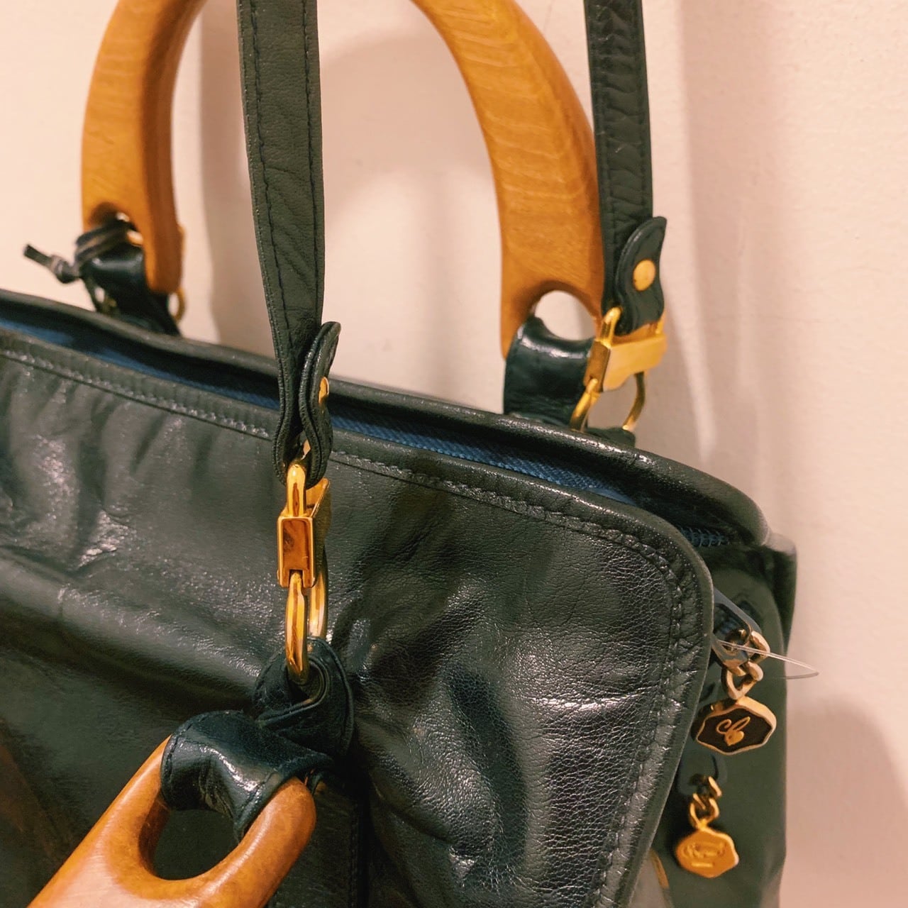 "vintage wood×leather hand BAG"