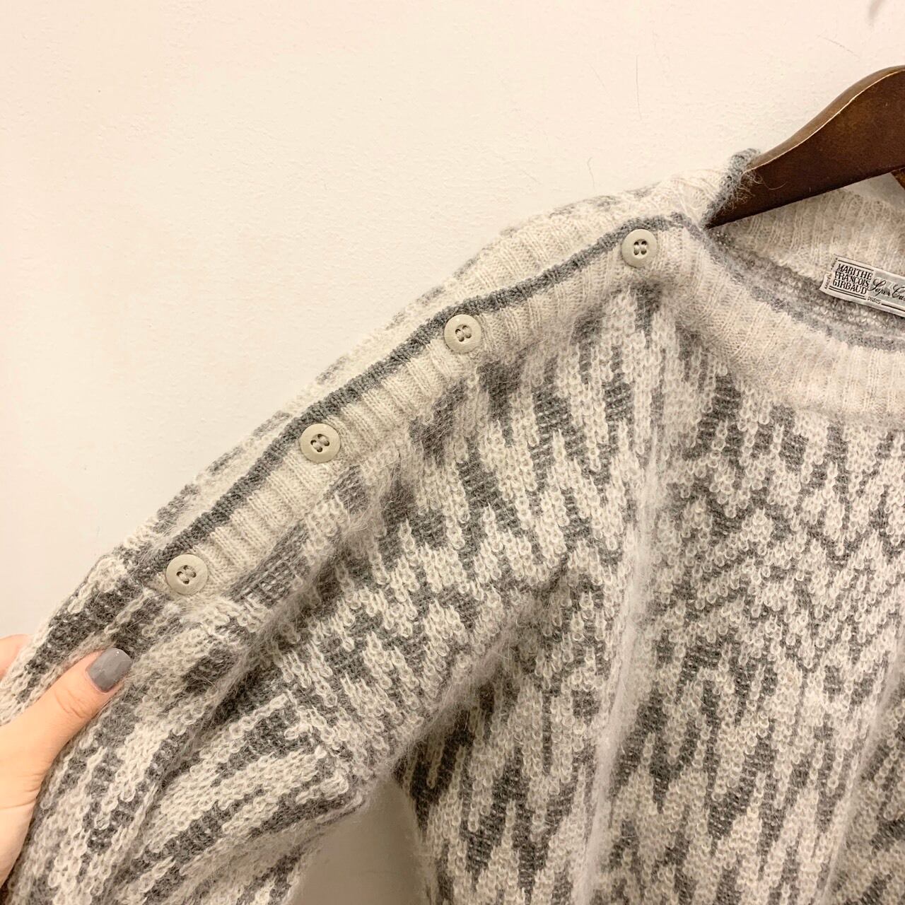 両肩に付いているボタンのデザインも可愛らしく、ニットですが薄めの素材でアウターの下に着ても着膨れすることなく着れます