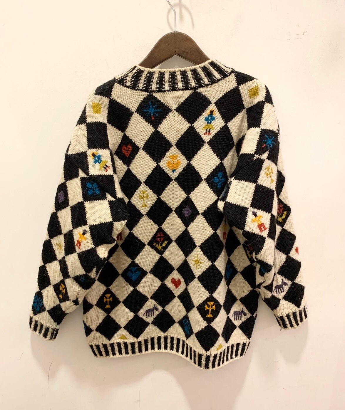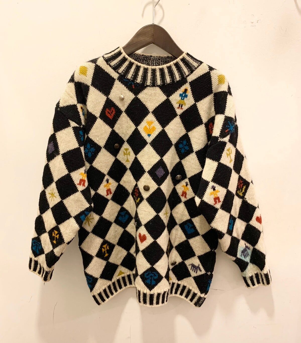 vintage/ヴィンテージ/Unique Knit/長袖ニット/ユニーク/ハーリキンチェック柄/サイズ10/イギリス製