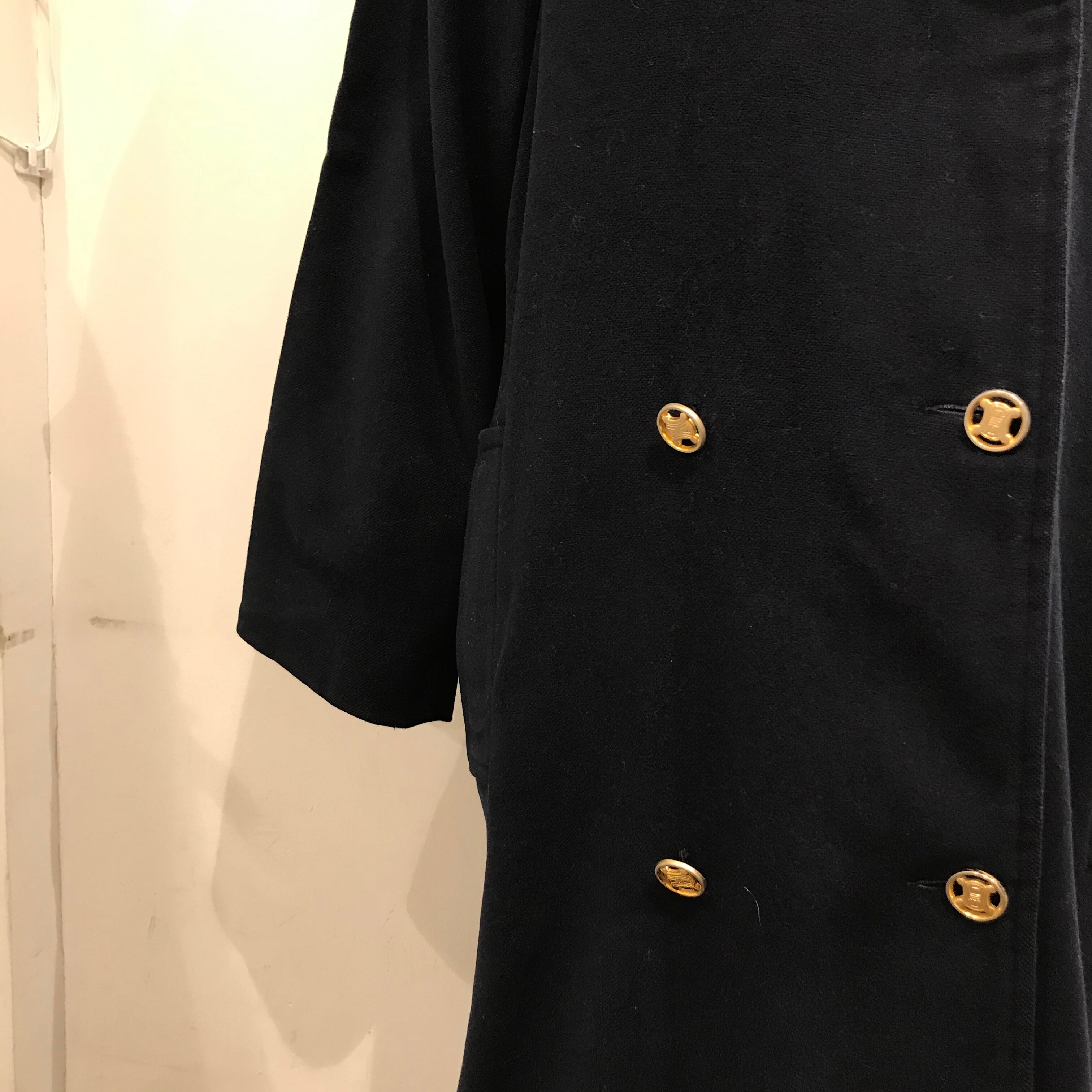 落ち着いたネイビーカラーとゴールドボタンがお洒落なセリーヌのロングコートです!
