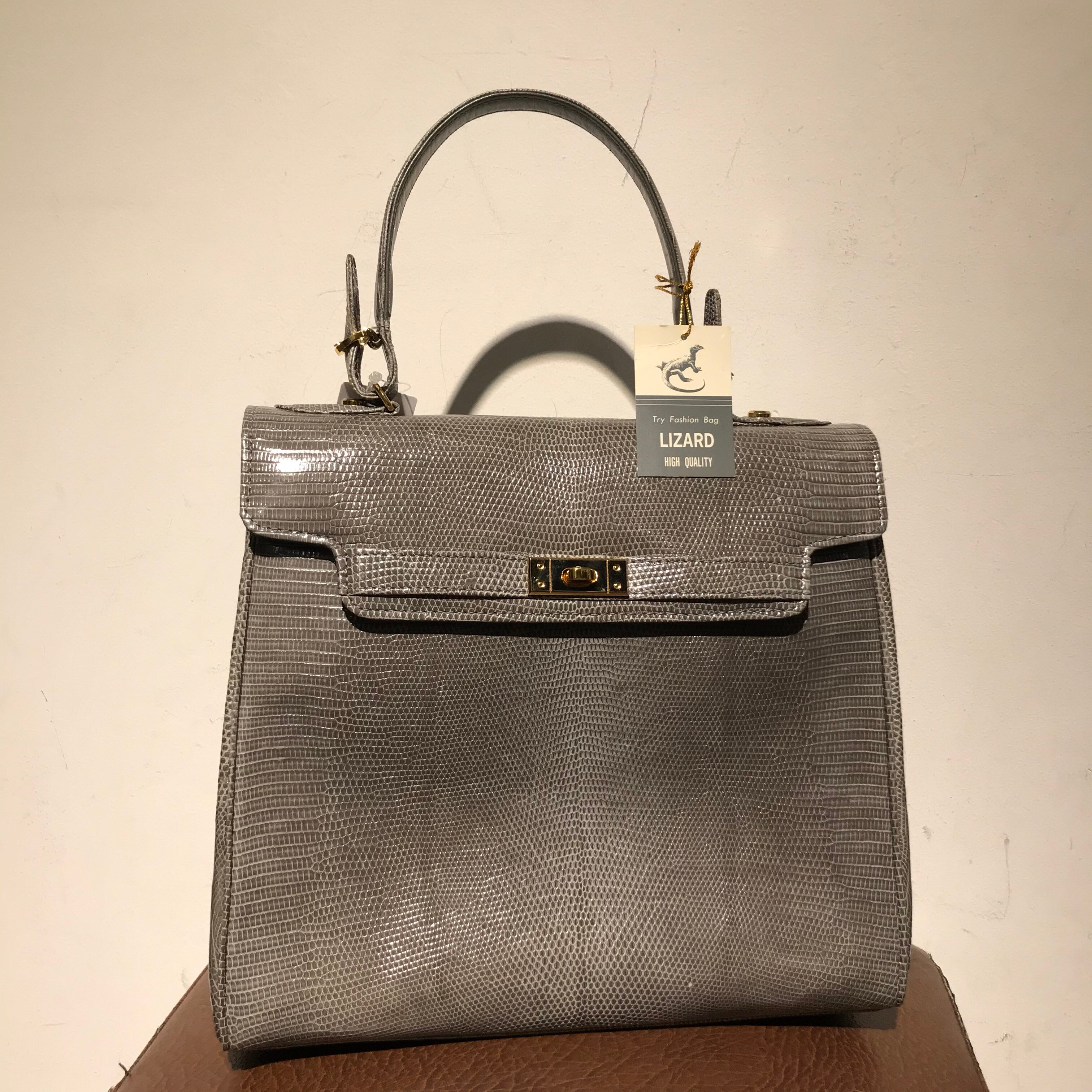 LIZARD bag/トカゲの革/ハンドバッグ/バーキン風/グレー
