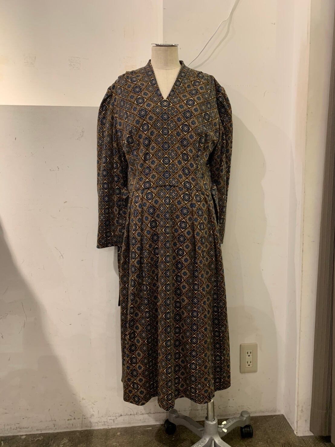 vintage/one-piece/flour/brown/ビンテージ/ワンピース/花/柄/ブラウン