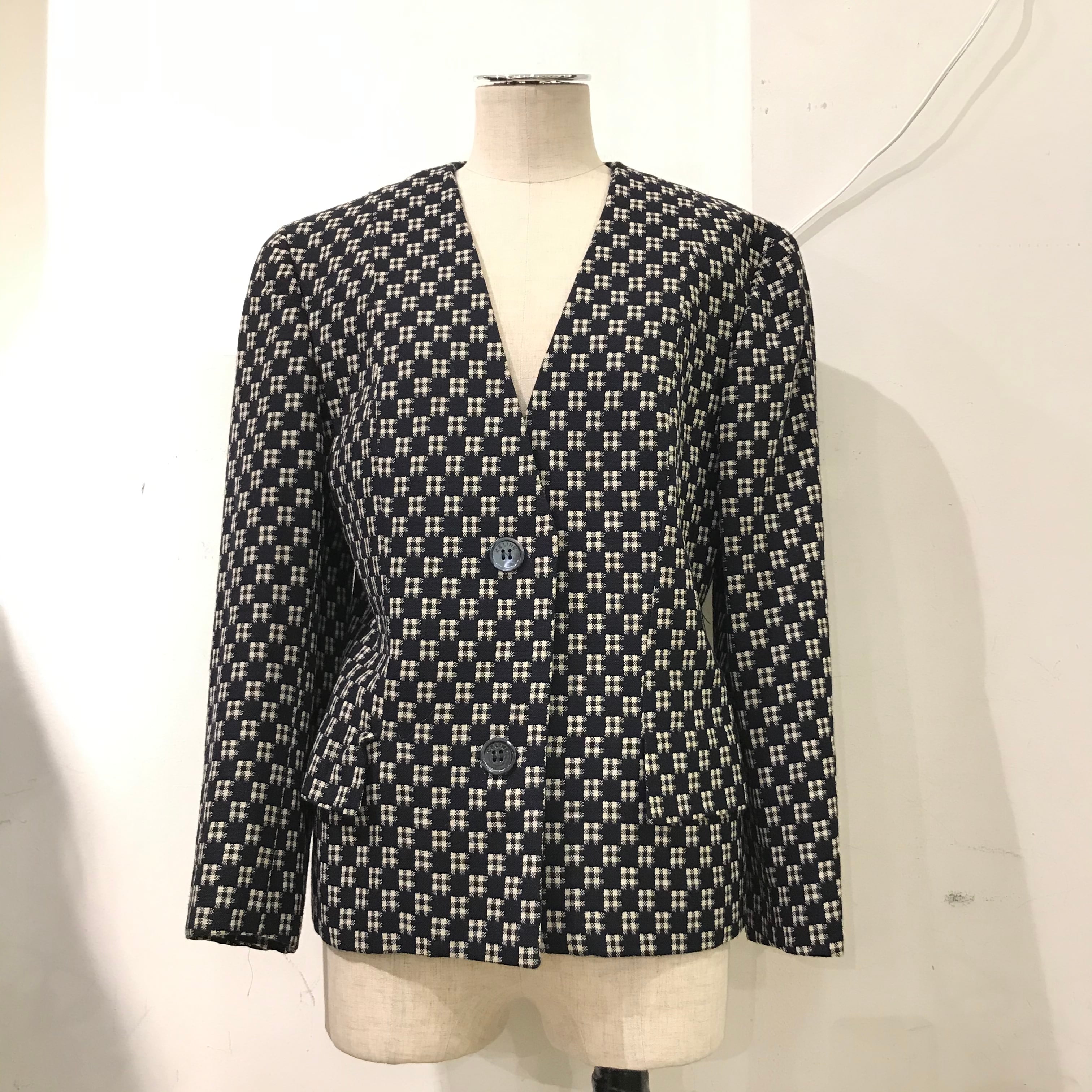 CELINE/セリーヌ/ノーカラージャケット/チェック柄/ネイビーカラー