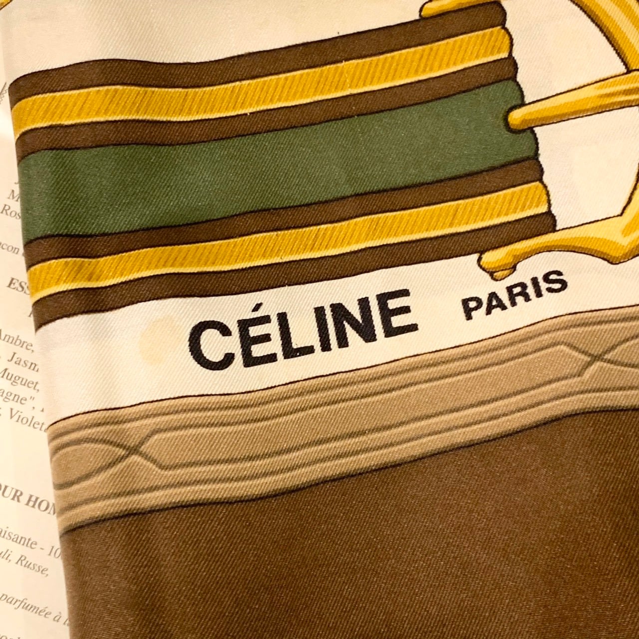 CELINE/セリーヌ/scarf/スカーフ/カーキ系/馬柄/大判/silk100%