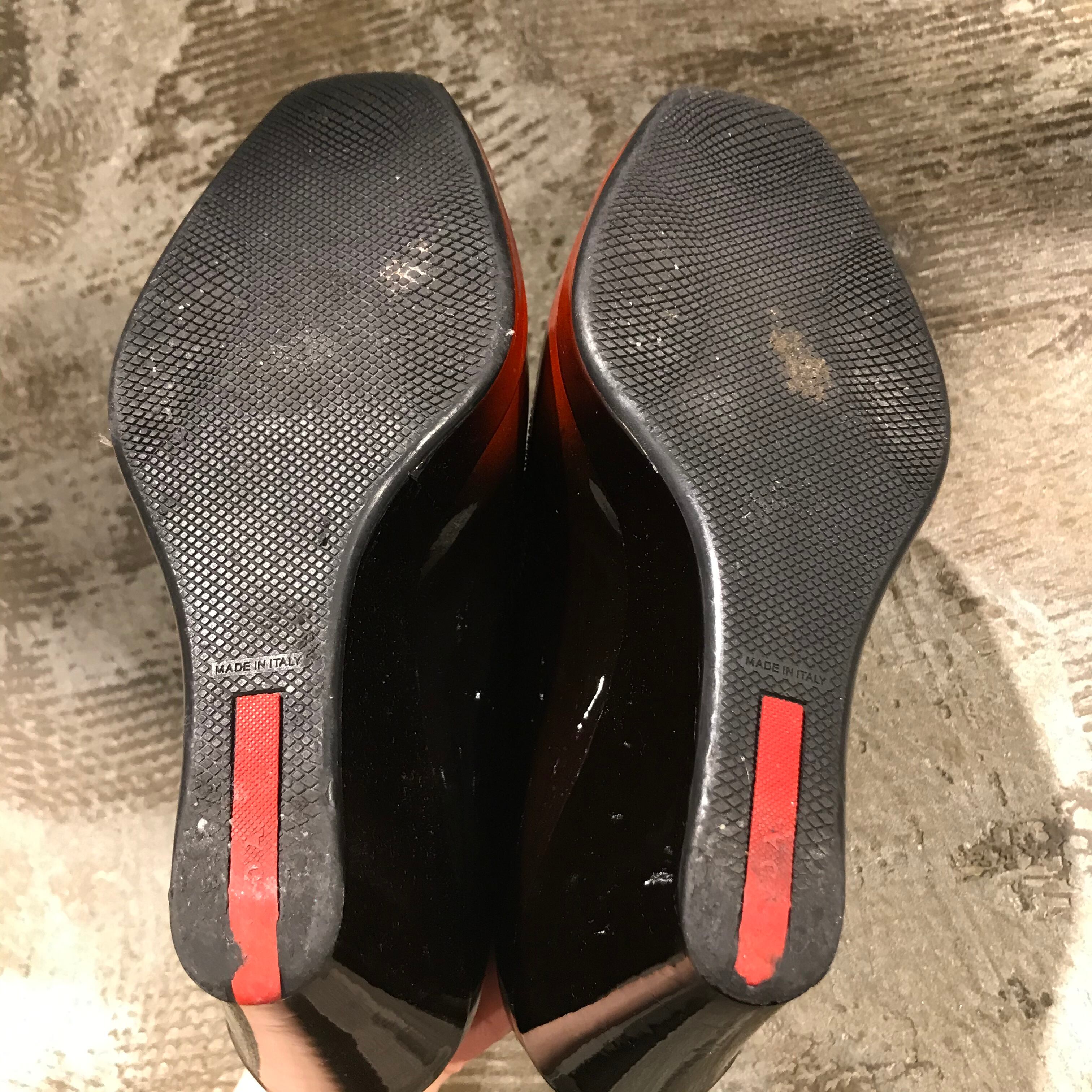 PRADA/プラダ/エナメル/ウェッジサンダル/ブラック/オレンジ