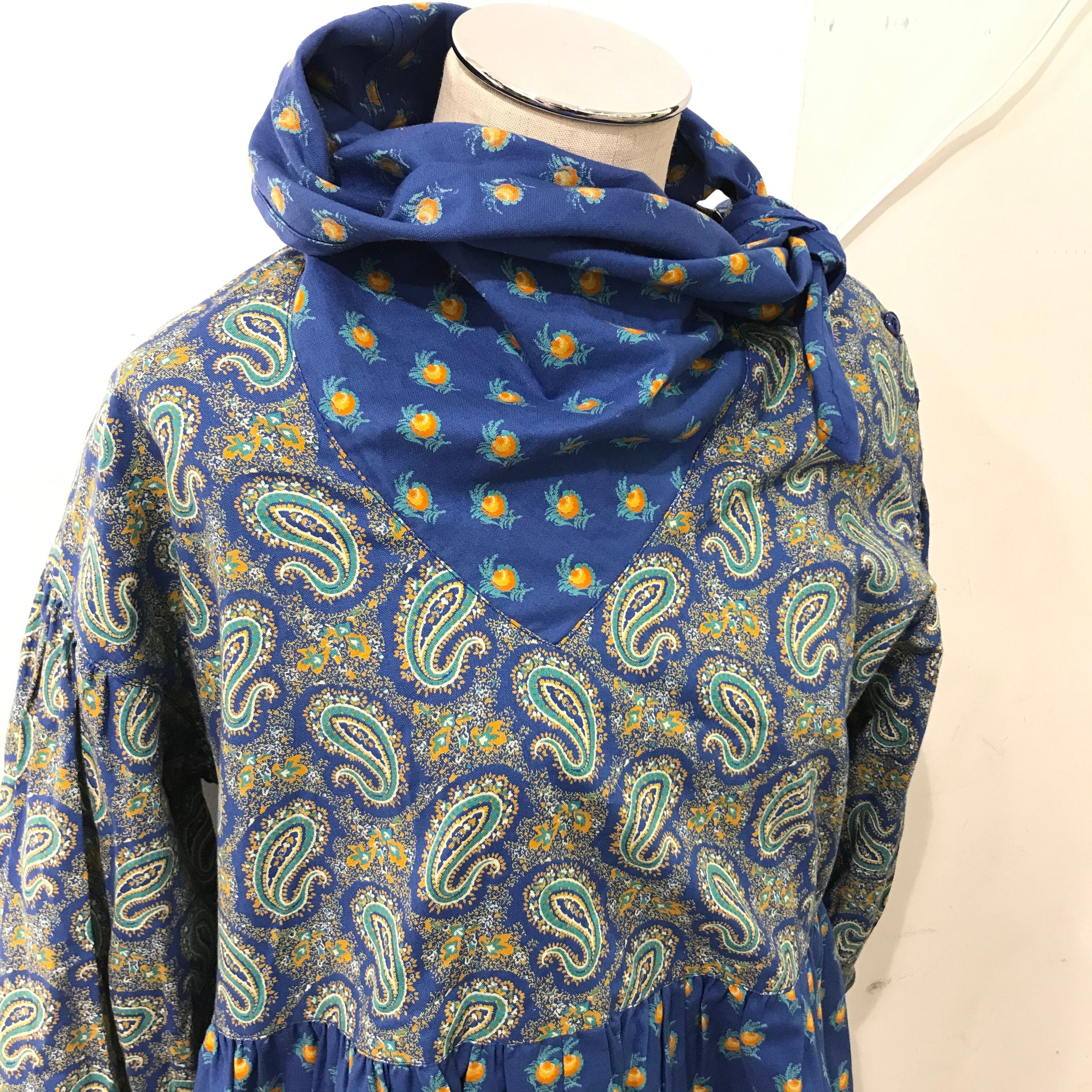 made in France/フランス製/コットンワンピース/スカーフ付き/ペイズリー/花柄/ブルー