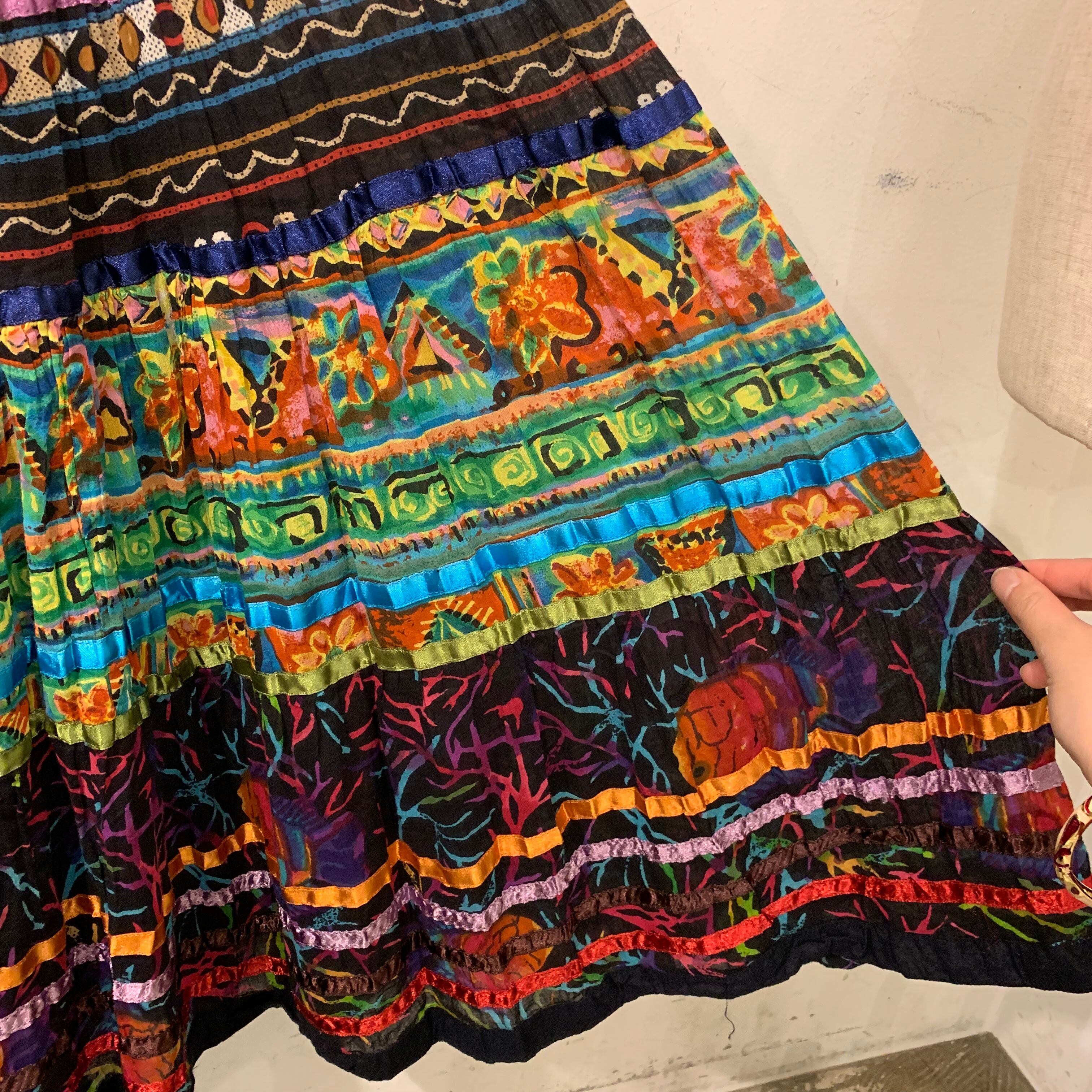 made in India/インド製/柄スカート/派手/ギャザースカート