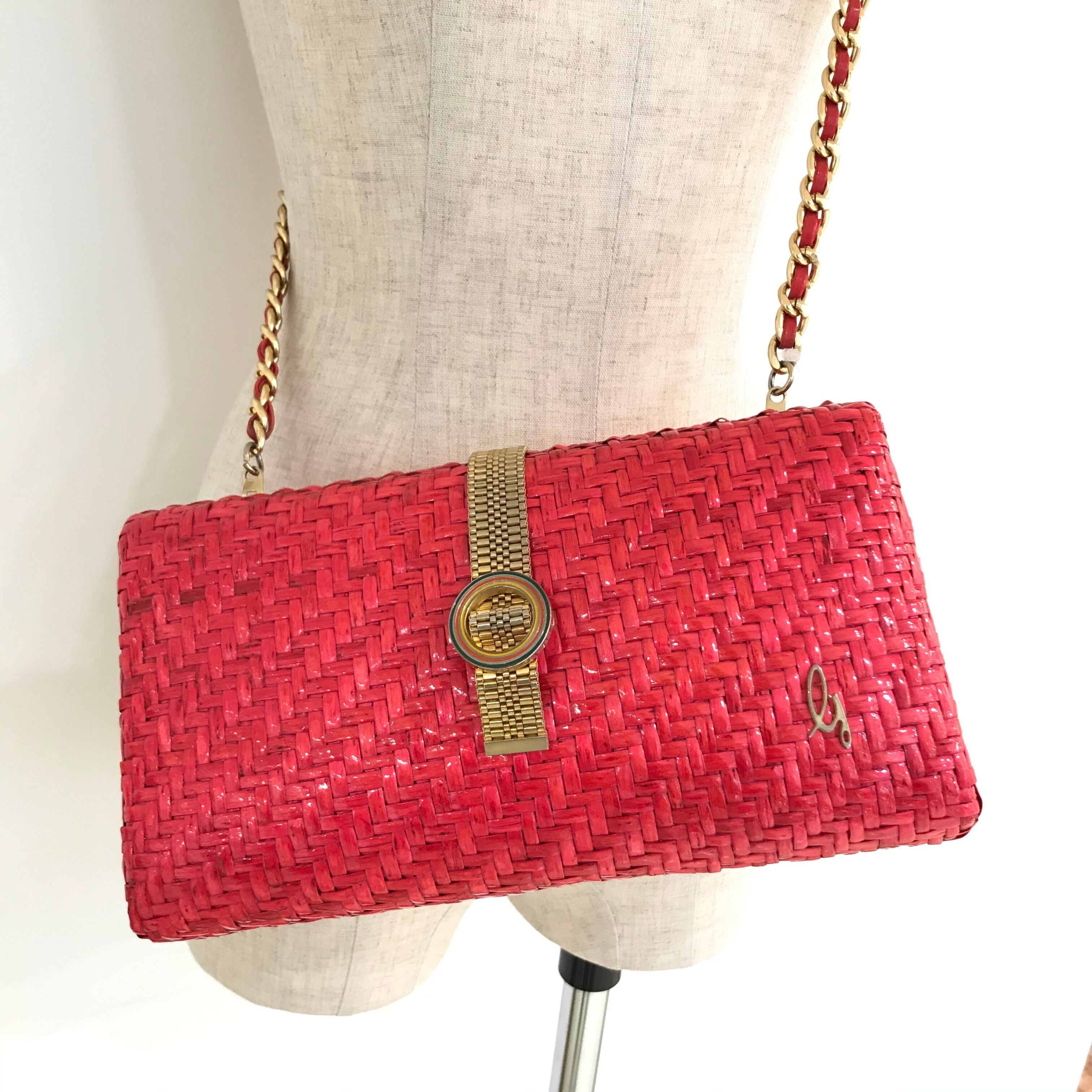 カゴクラッチバッグ/レッドカラー/ゴールドチェーン