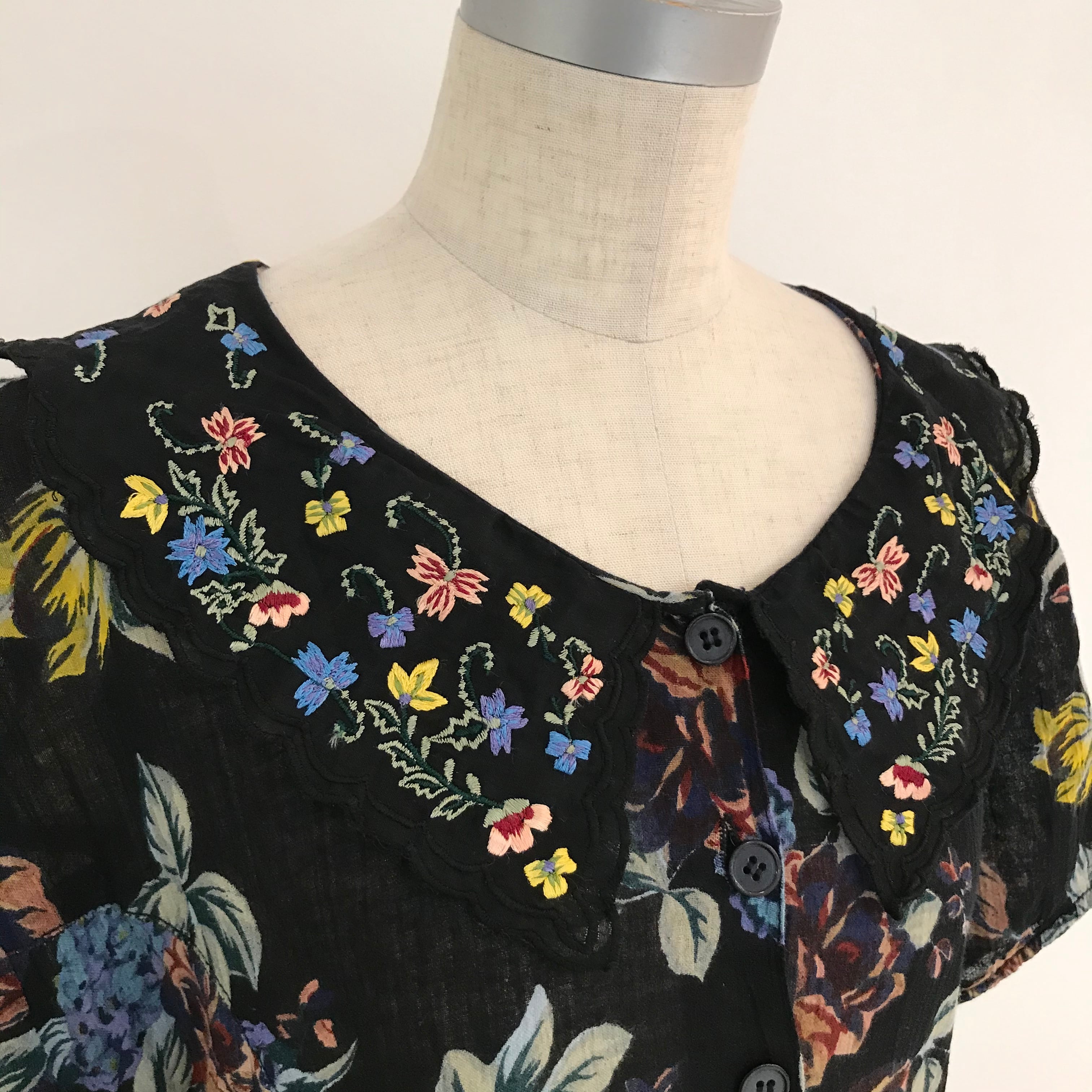 made in India/インド製/襟刺繍/花柄ワンピース/ブラック/カラフル