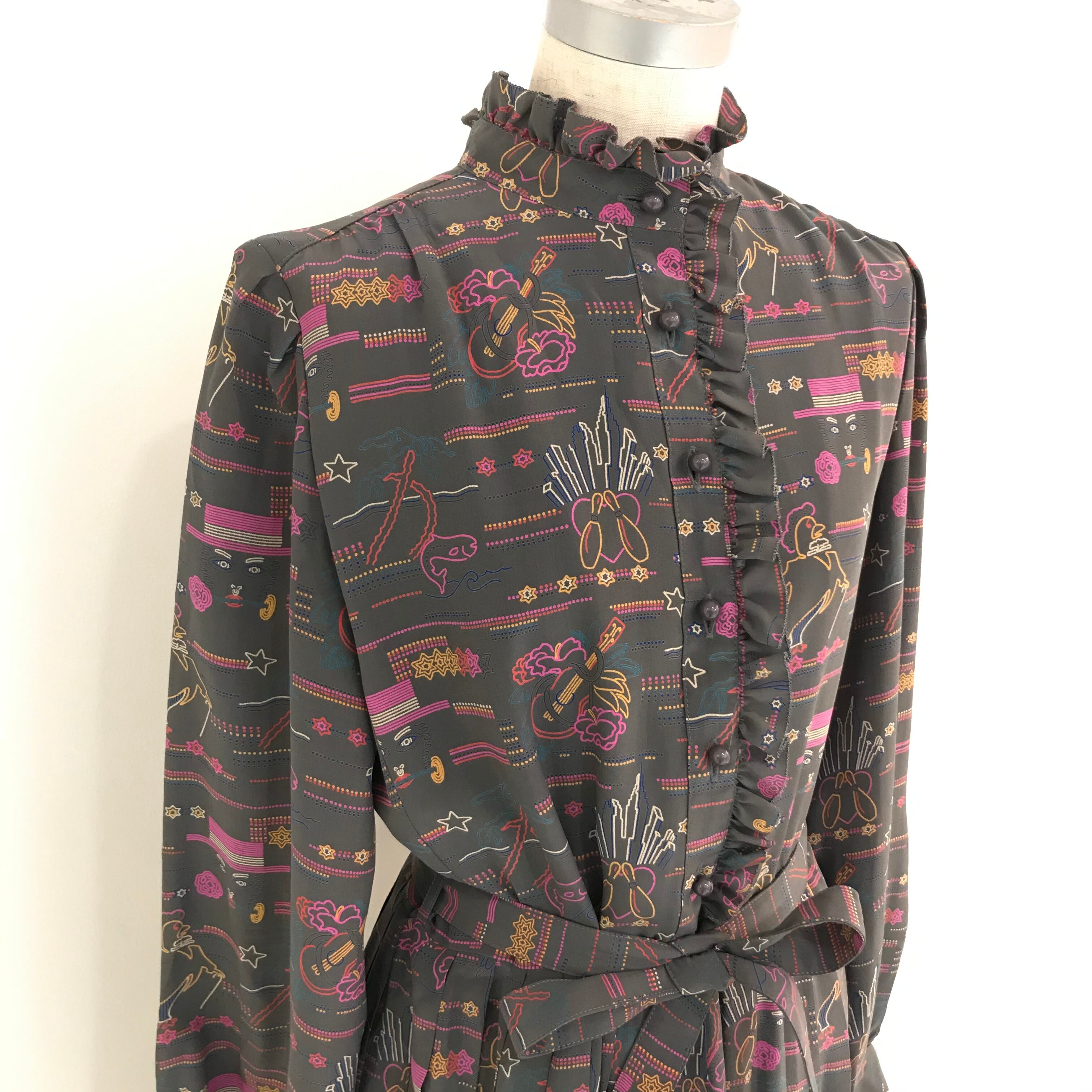 ungaro/ウンガロ/ワンピース/グレーカラー/プリーツ/フリル