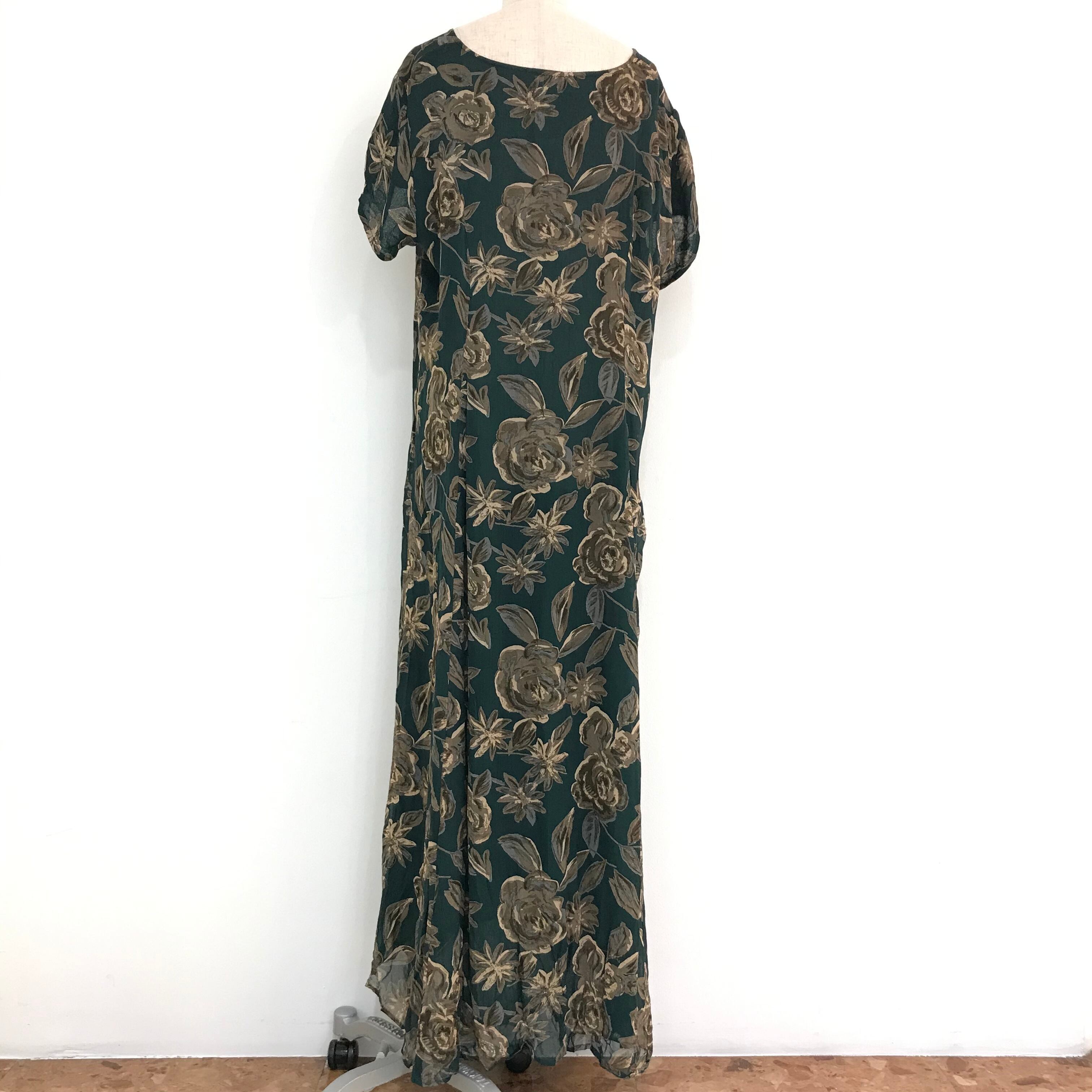 ワンピース/シフォン/花柄/グリーン/ブラウン/ショートスリーブ