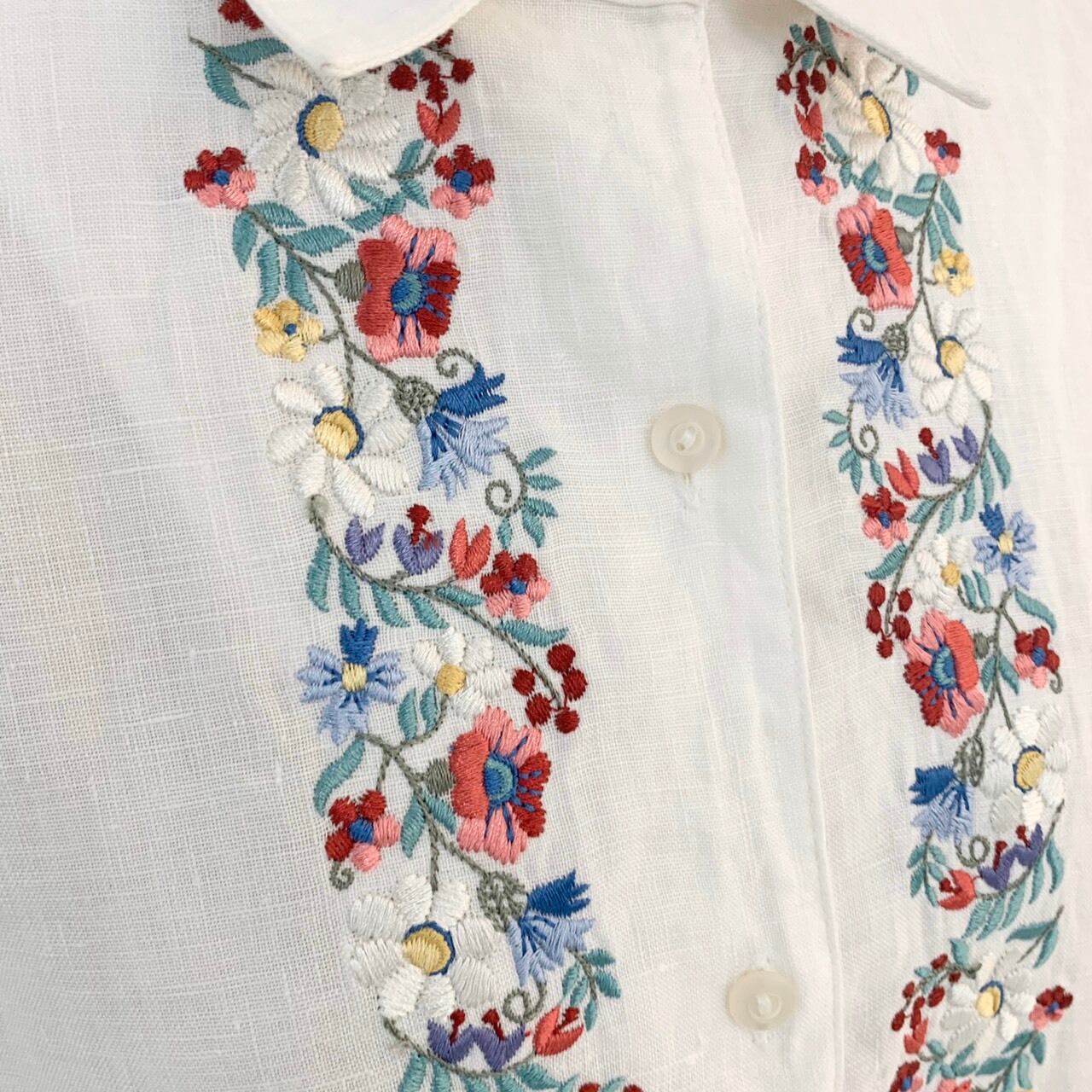 ラルフローレン/ralphlauren/長袖シャツ/shirt/刺繍/embroidery/花柄/サイズS/白色/linen100%