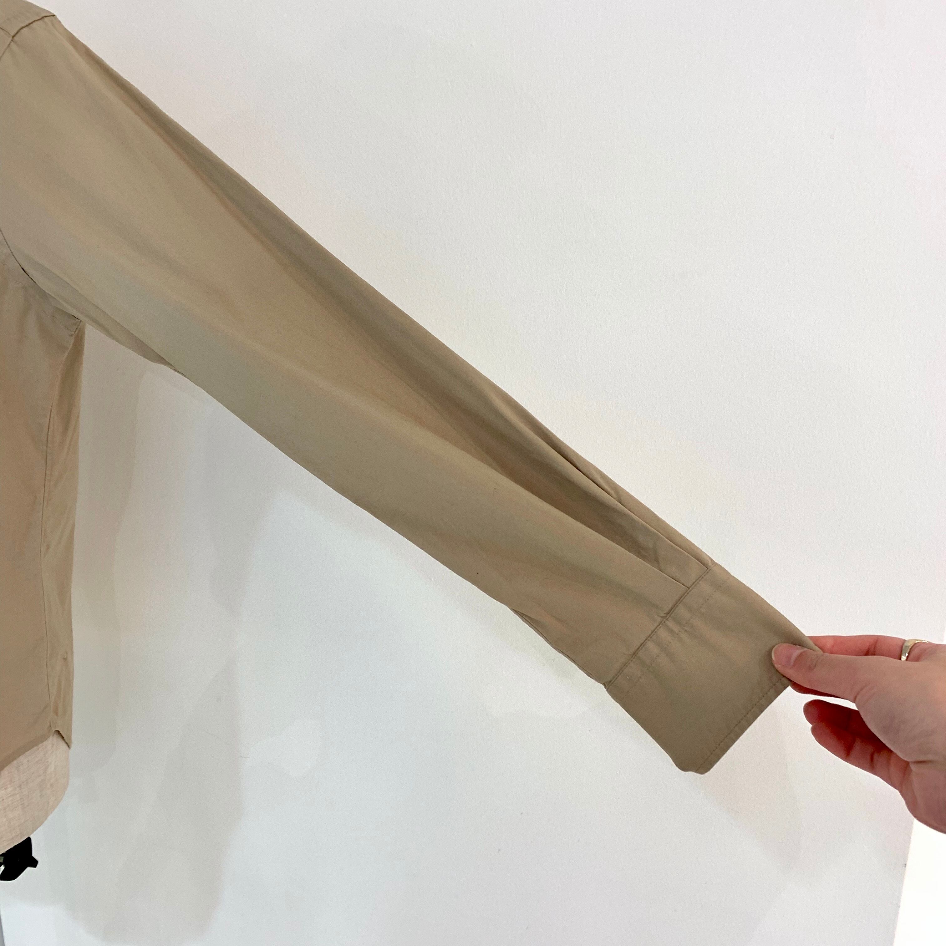 ベージュのシャツですので色々なアイテムに合わせやすい一着です◎