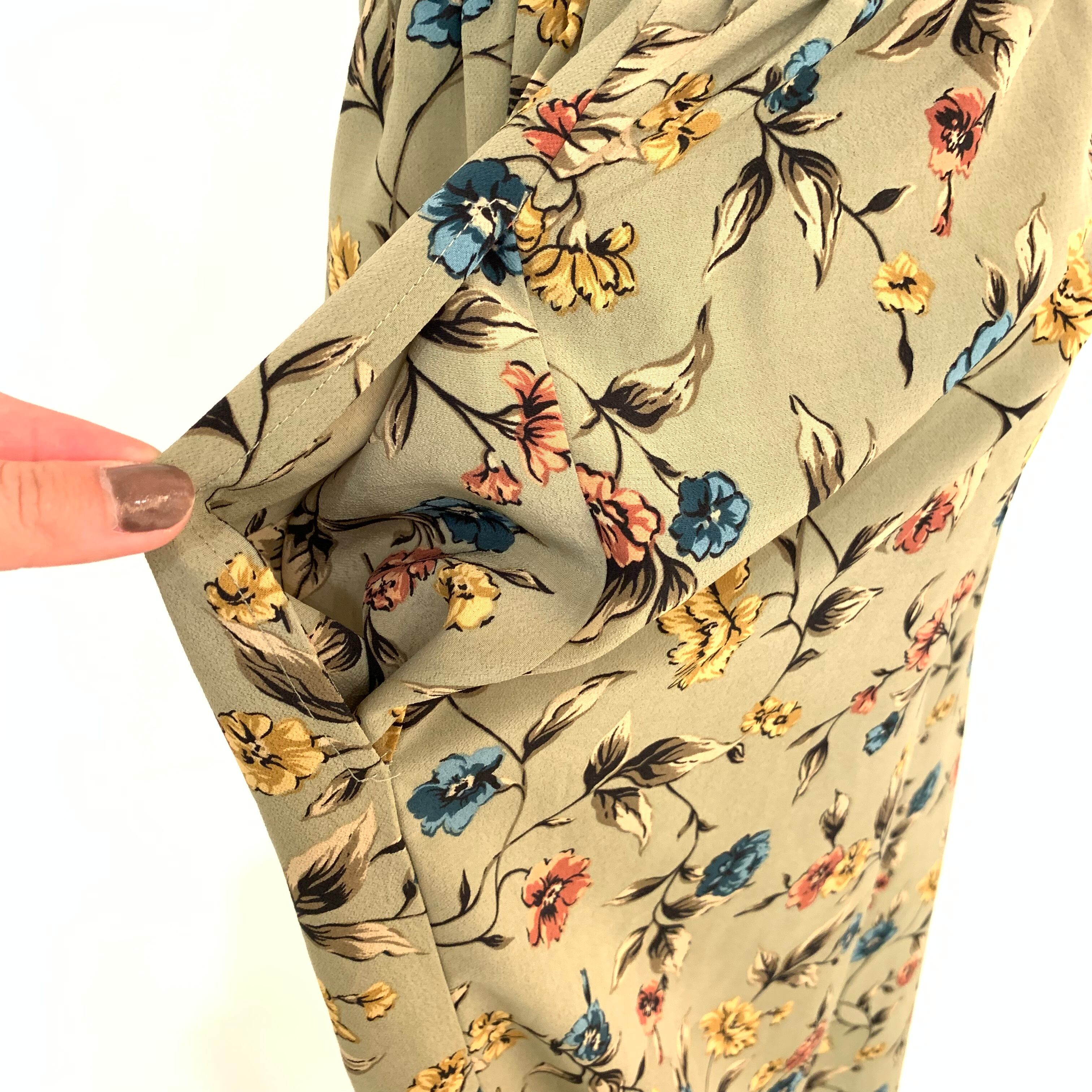 流行りのピスタチオカラーと花柄の組み合わせがとっても可愛いパンツになります。