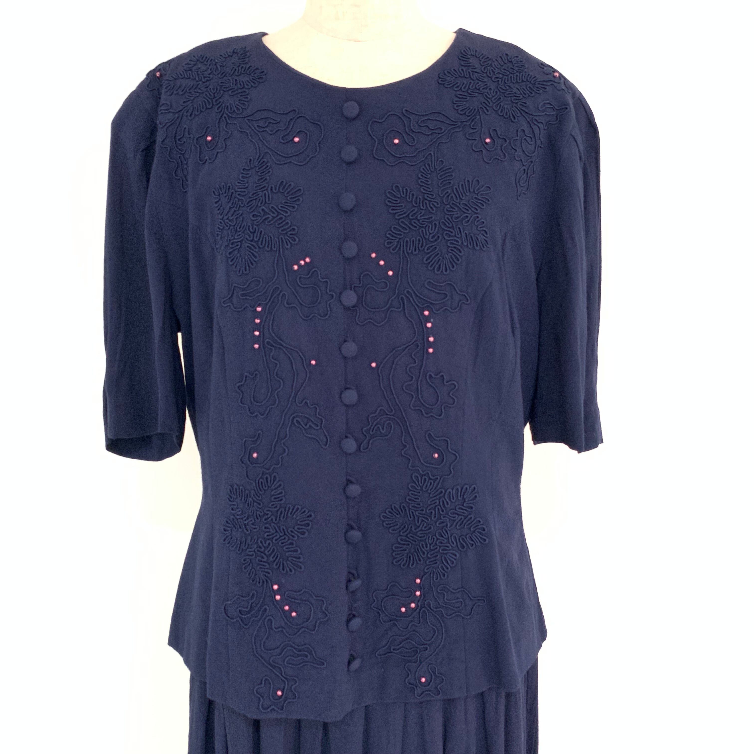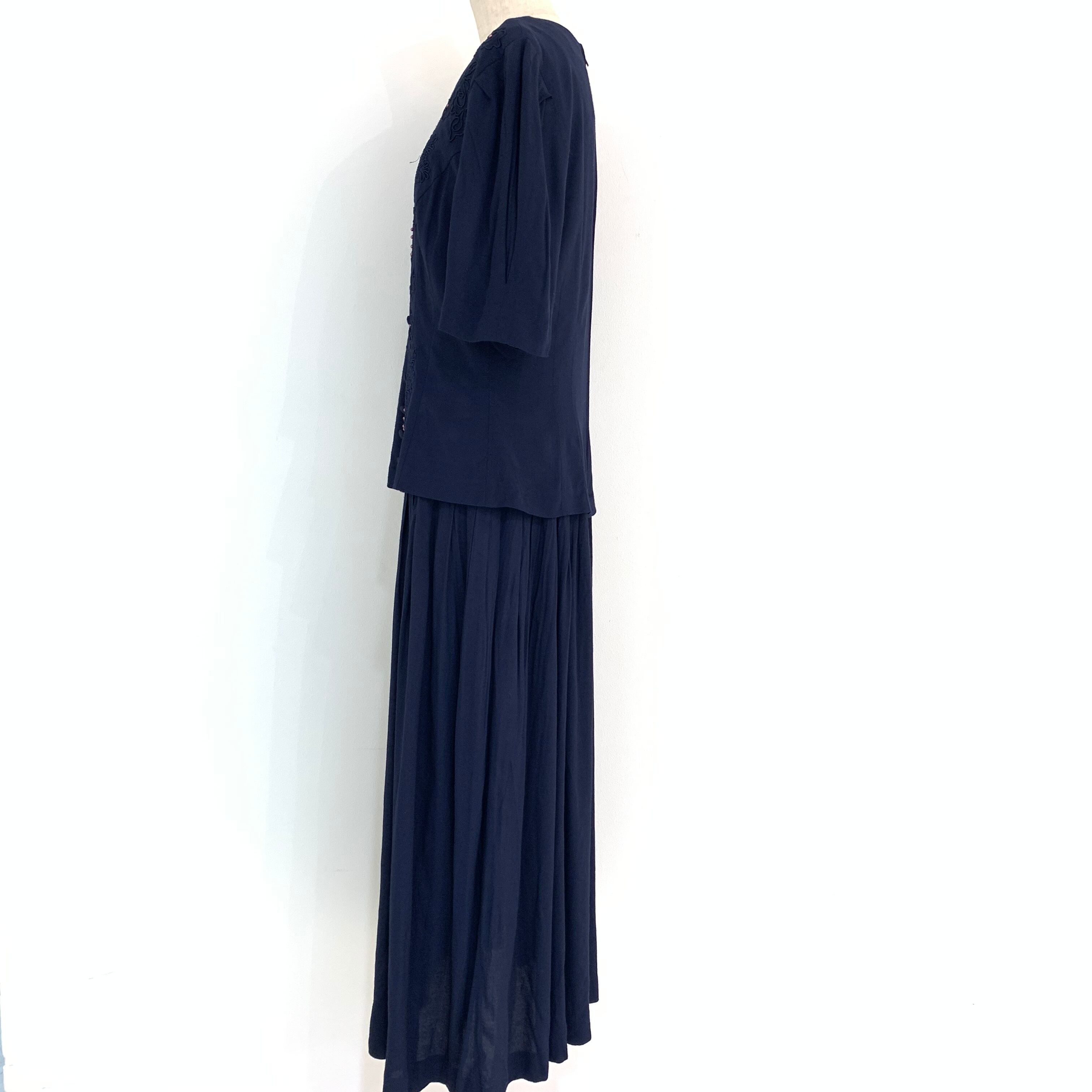vintage/one-piece/ヴィンテージ/ワンピース/刺繍/花/ネイビー