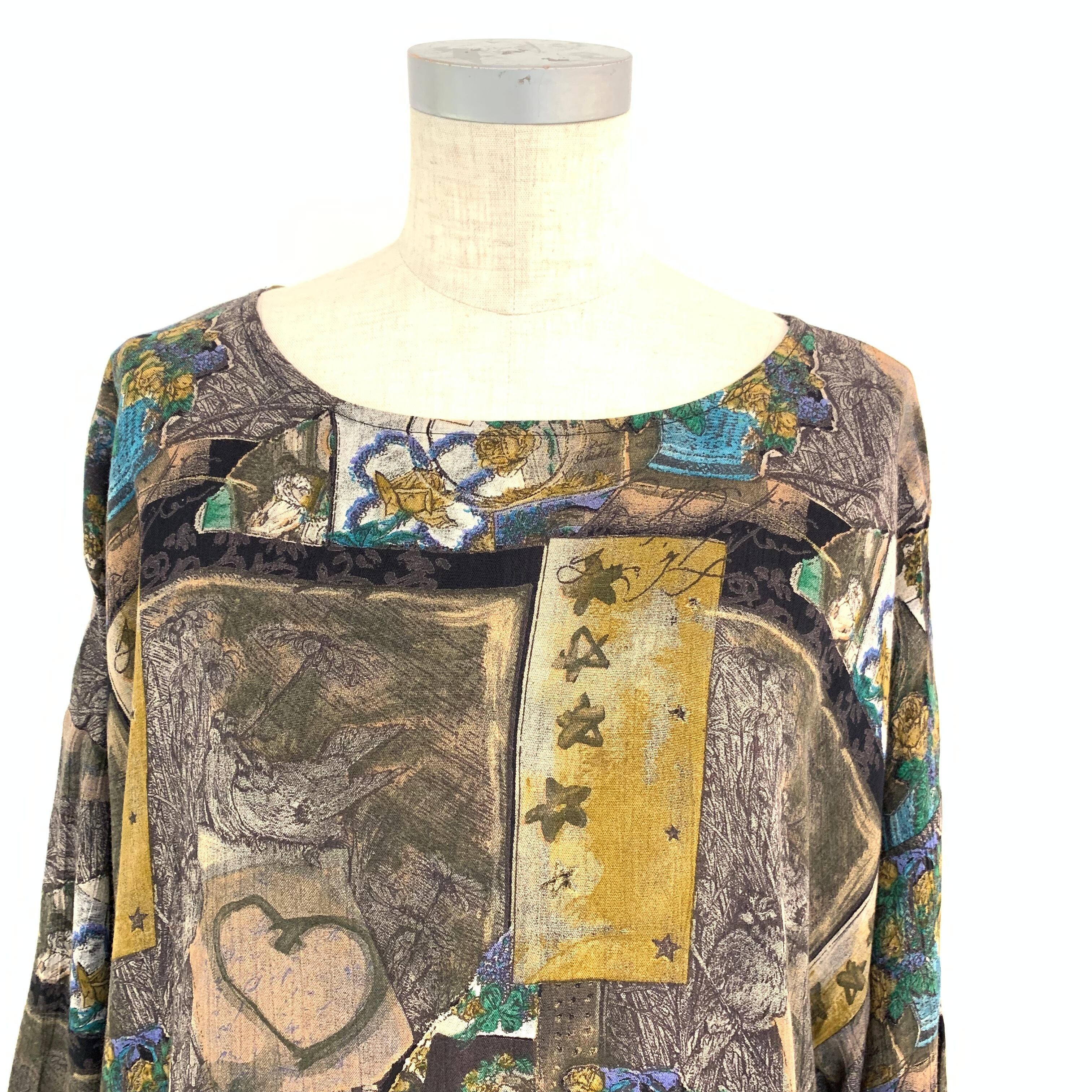 vintage/tops/pullover/トップス/プルオーバー/水彩画/5分丈