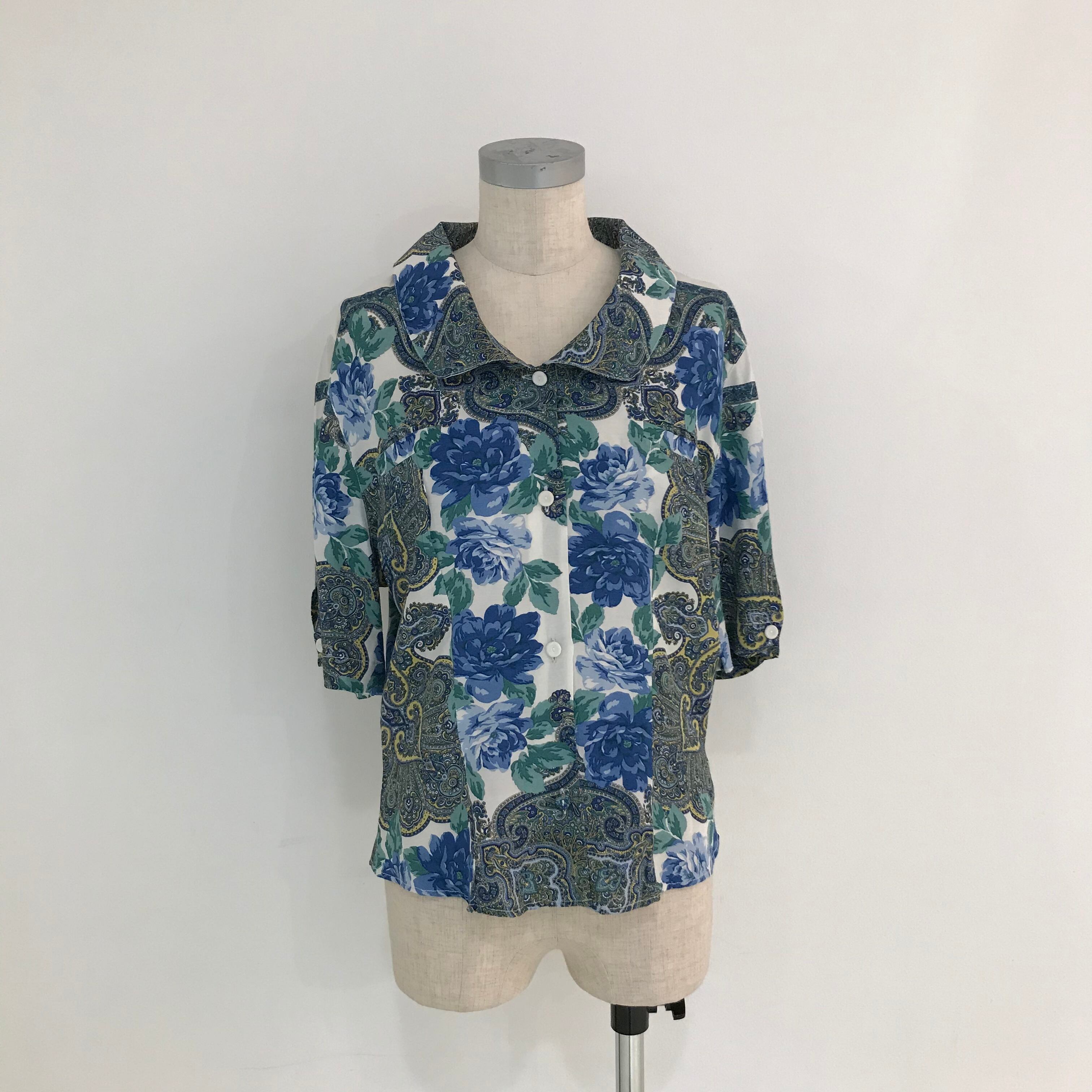 vintage/shirt/blue/Italia/花柄/シャツ/イタリア製