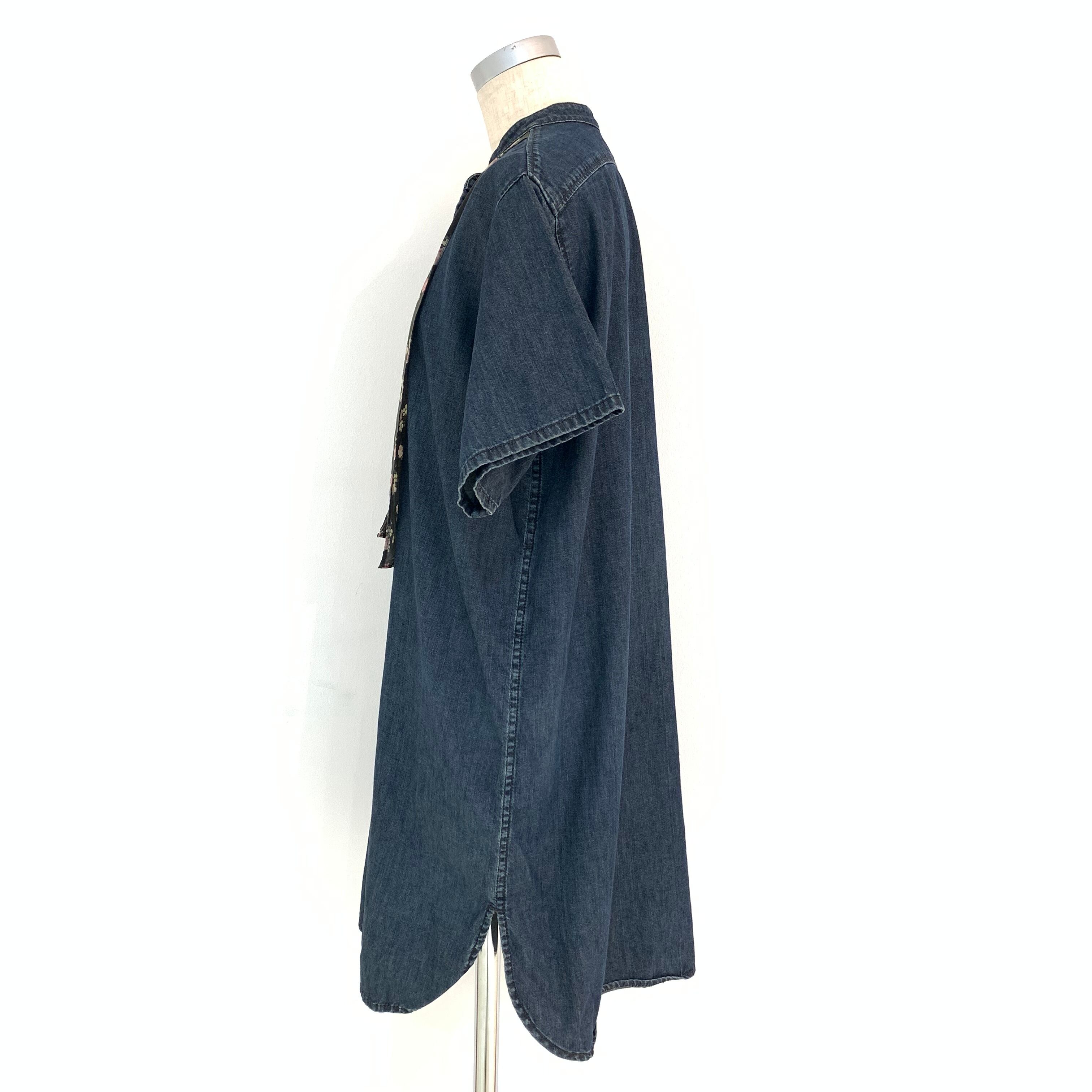 デニムに、花柄の布の組み合わせがとても素敵な1着です◎