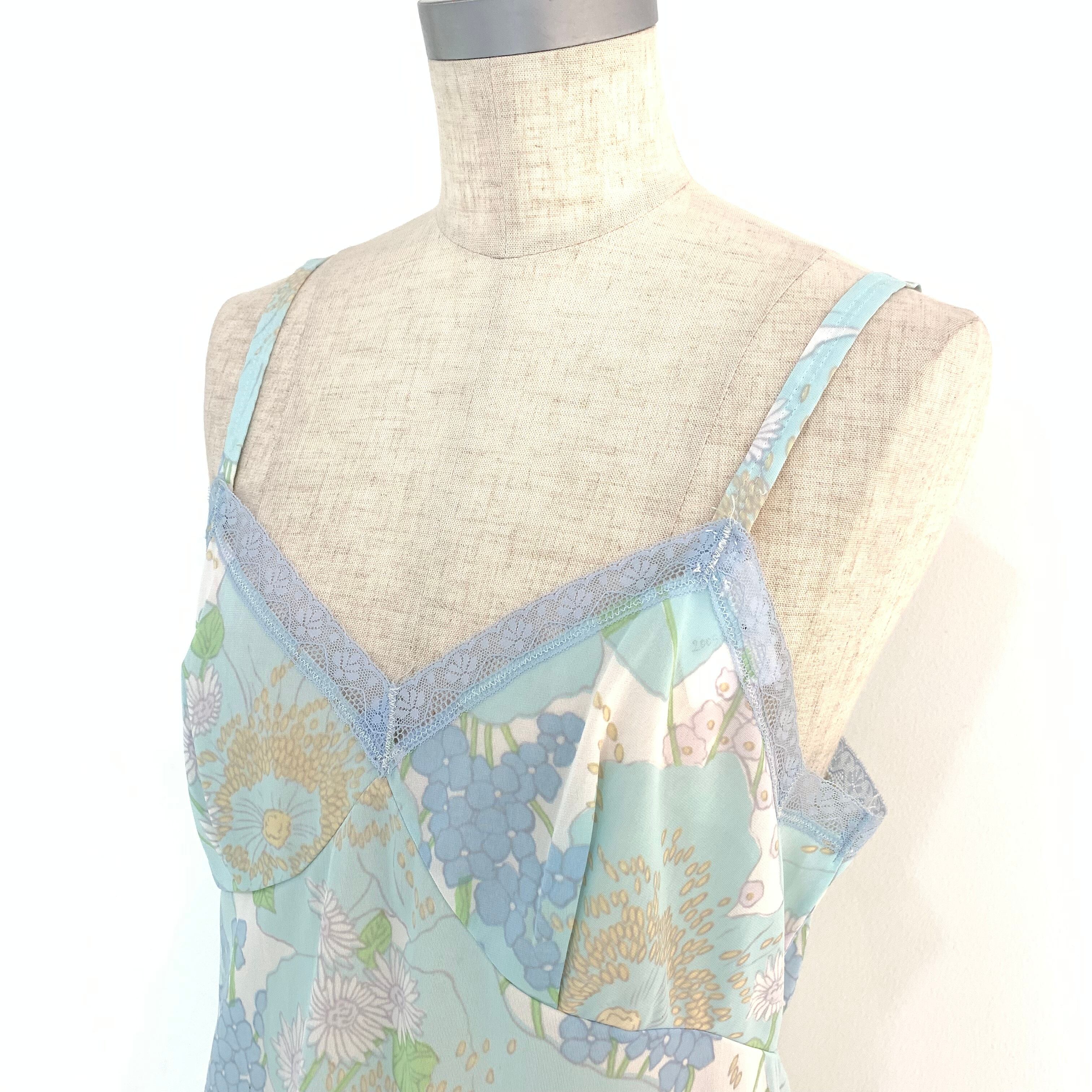 vintage/lingerie/ランジェリー/チュニック丈/花柄/レース/水色