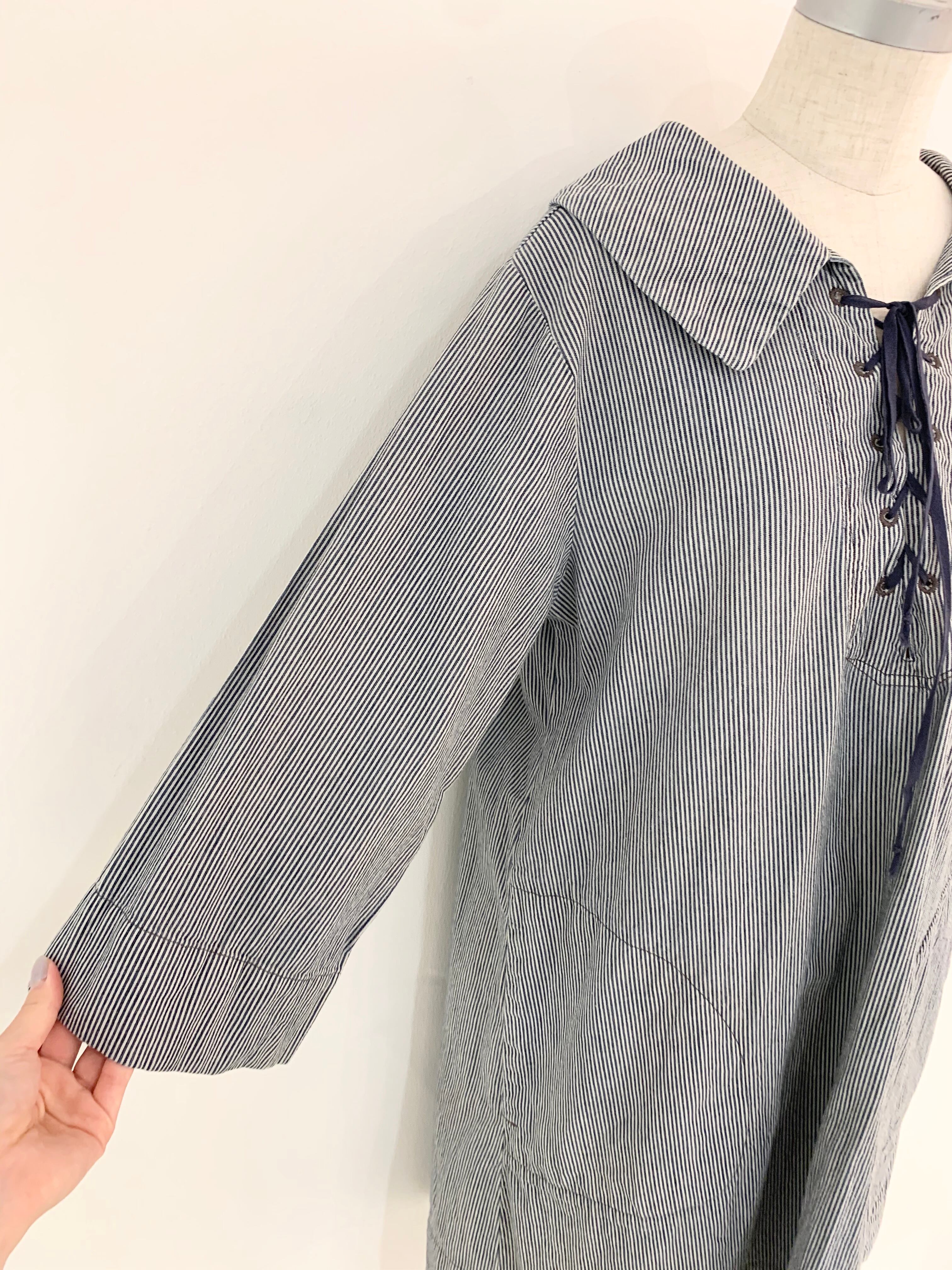 ralphlauren/cotton/レースアップブラウス/blouse/ラルフローレン/Stripe/ストライプ柄/七分袖/サイズS