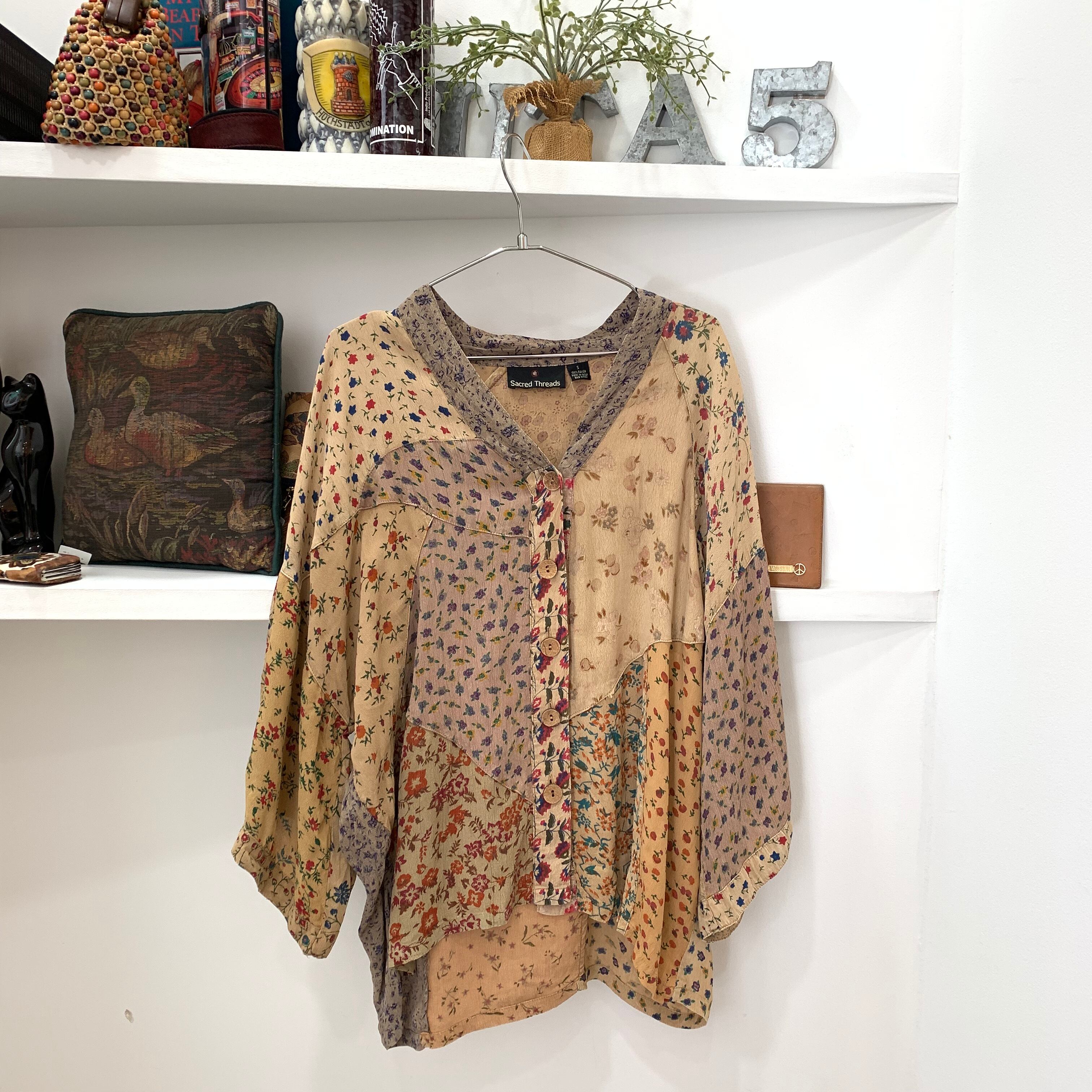 vintage/blouse/ブラウス/インド製/花柄/切り替え
