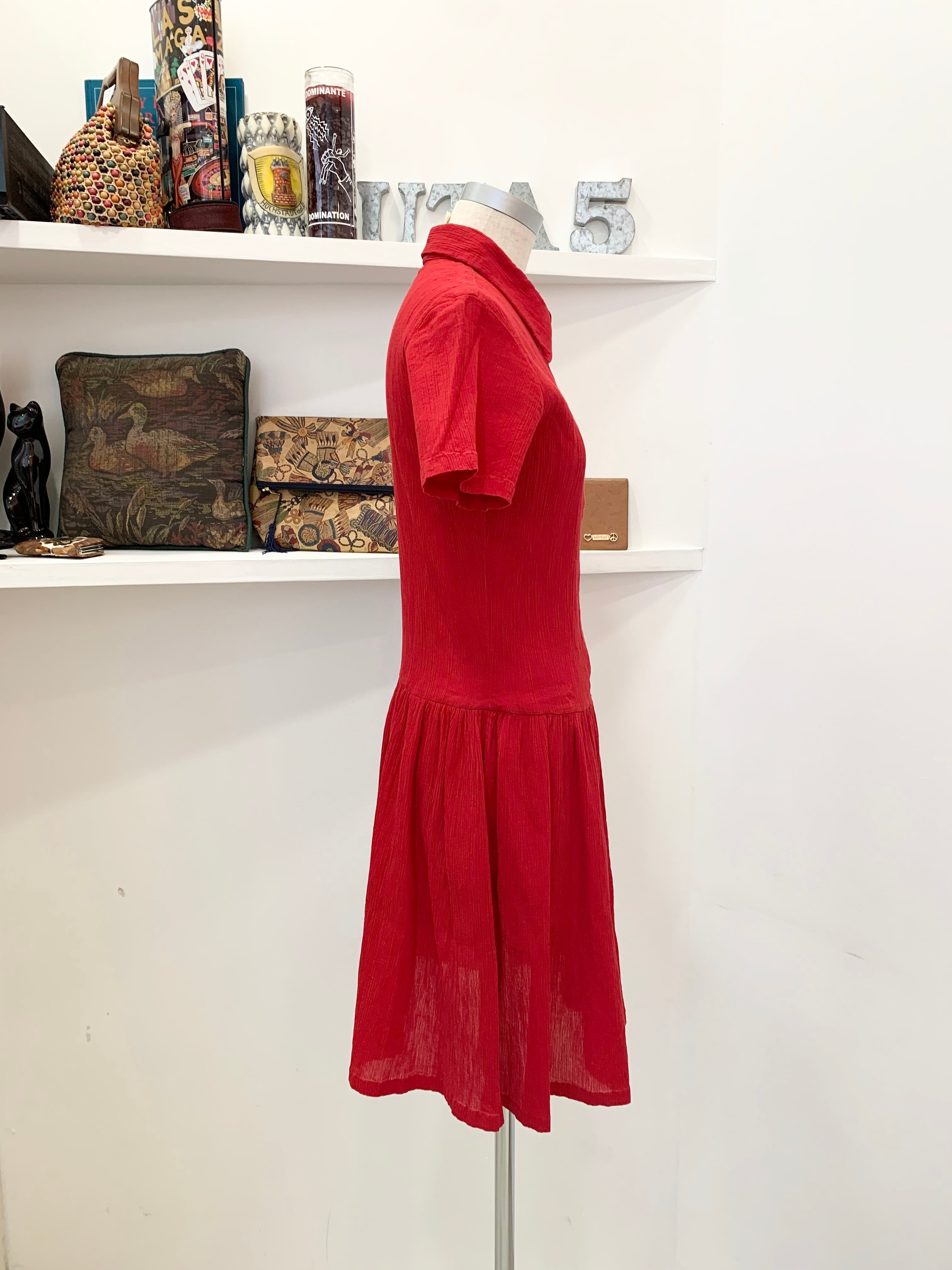 アニエスベー/agnes b/シャツワンピース/赤色/one-piece/キッズ/子供服/プリーツ/シワ加工