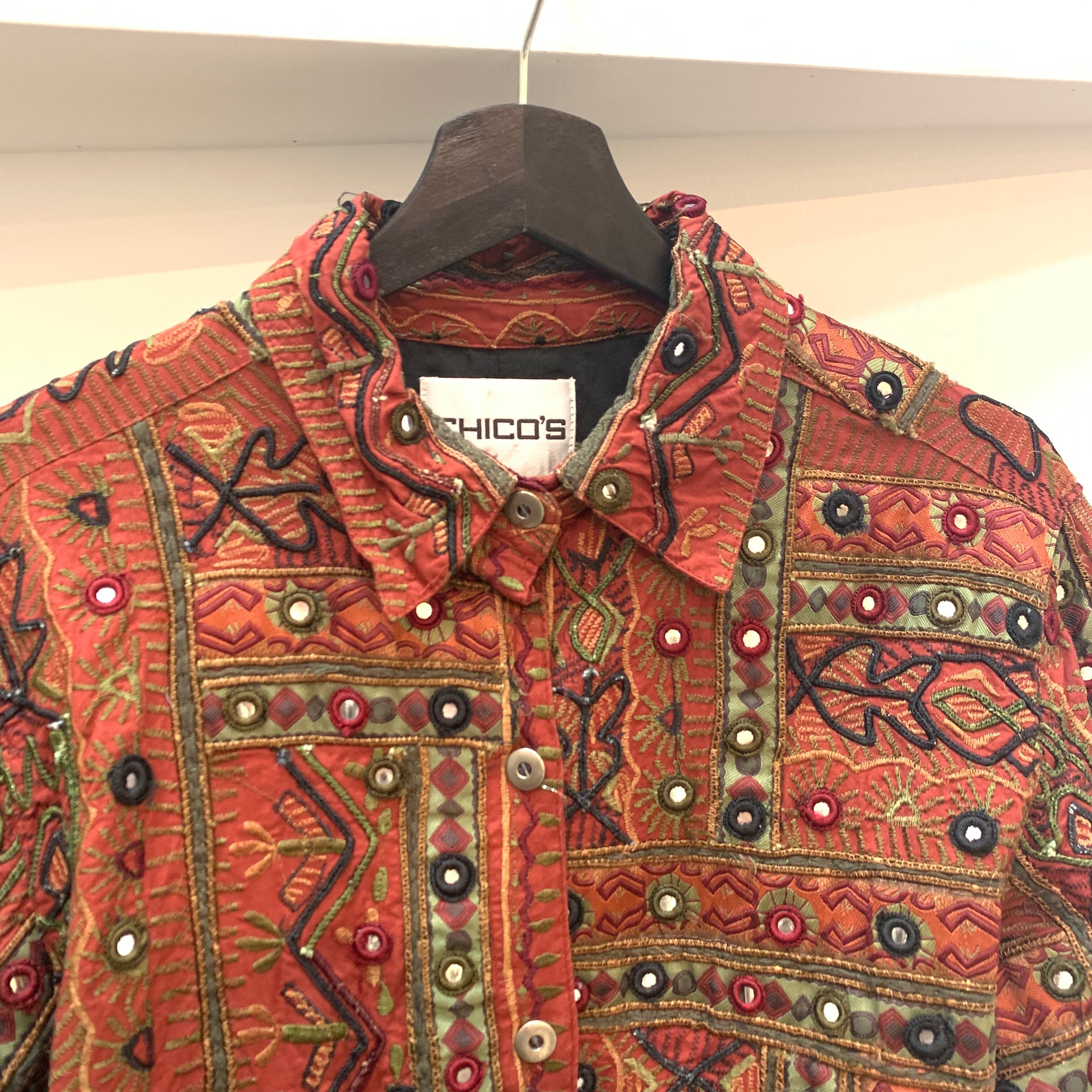 vintage/jacket/orange/ジャケット/インド製/派手/刺繍
