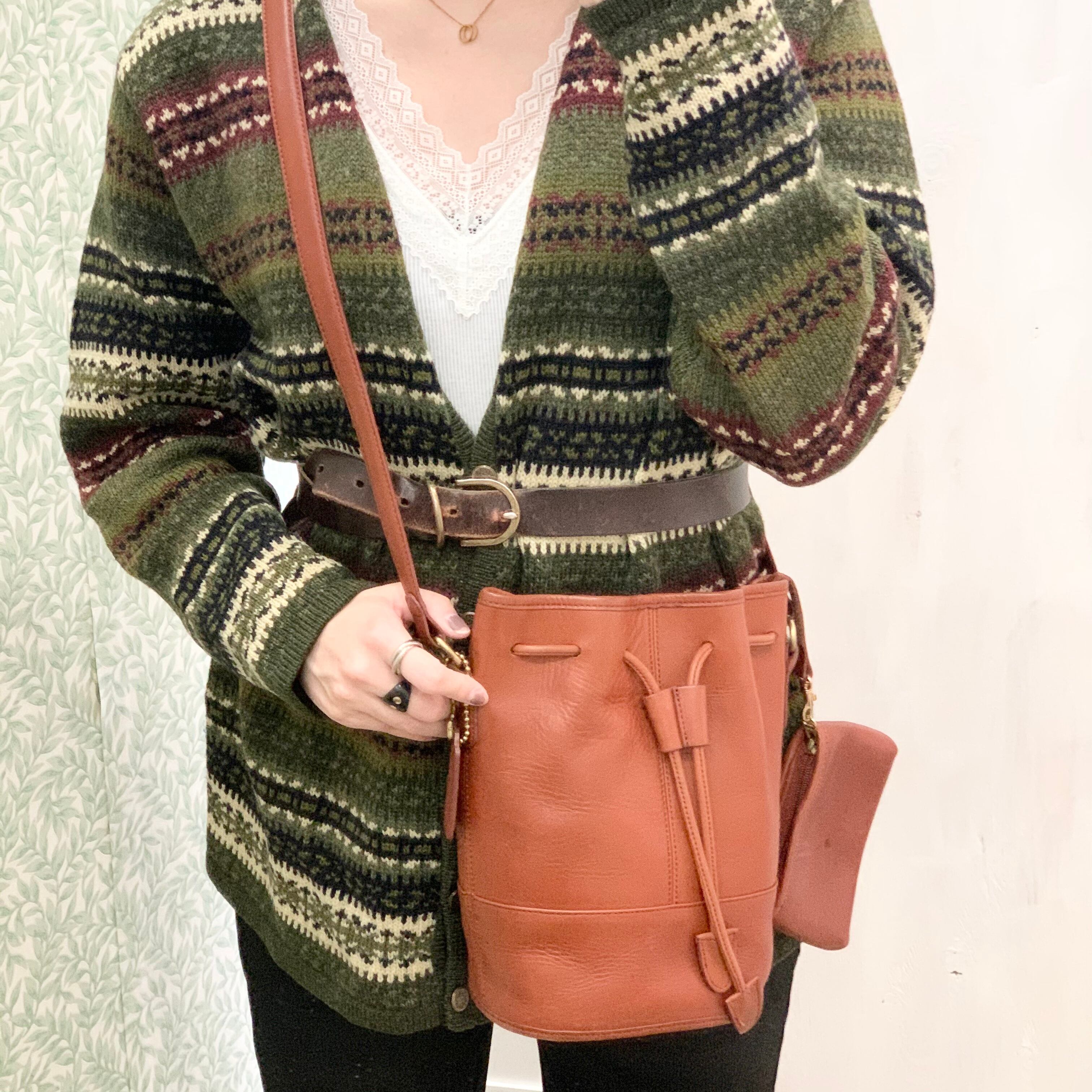 COACH/shoulderbag/茶色/巾着型/レザー/コーチ/ショルダーバッグ/ポーチ付き/チャーム付き