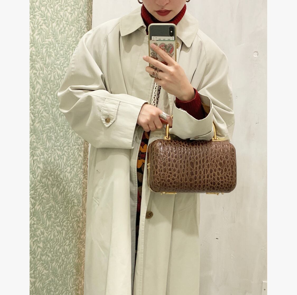 クロコ型押しデザインにゴールドの持ち手がとても可愛いバッグです!❤︎