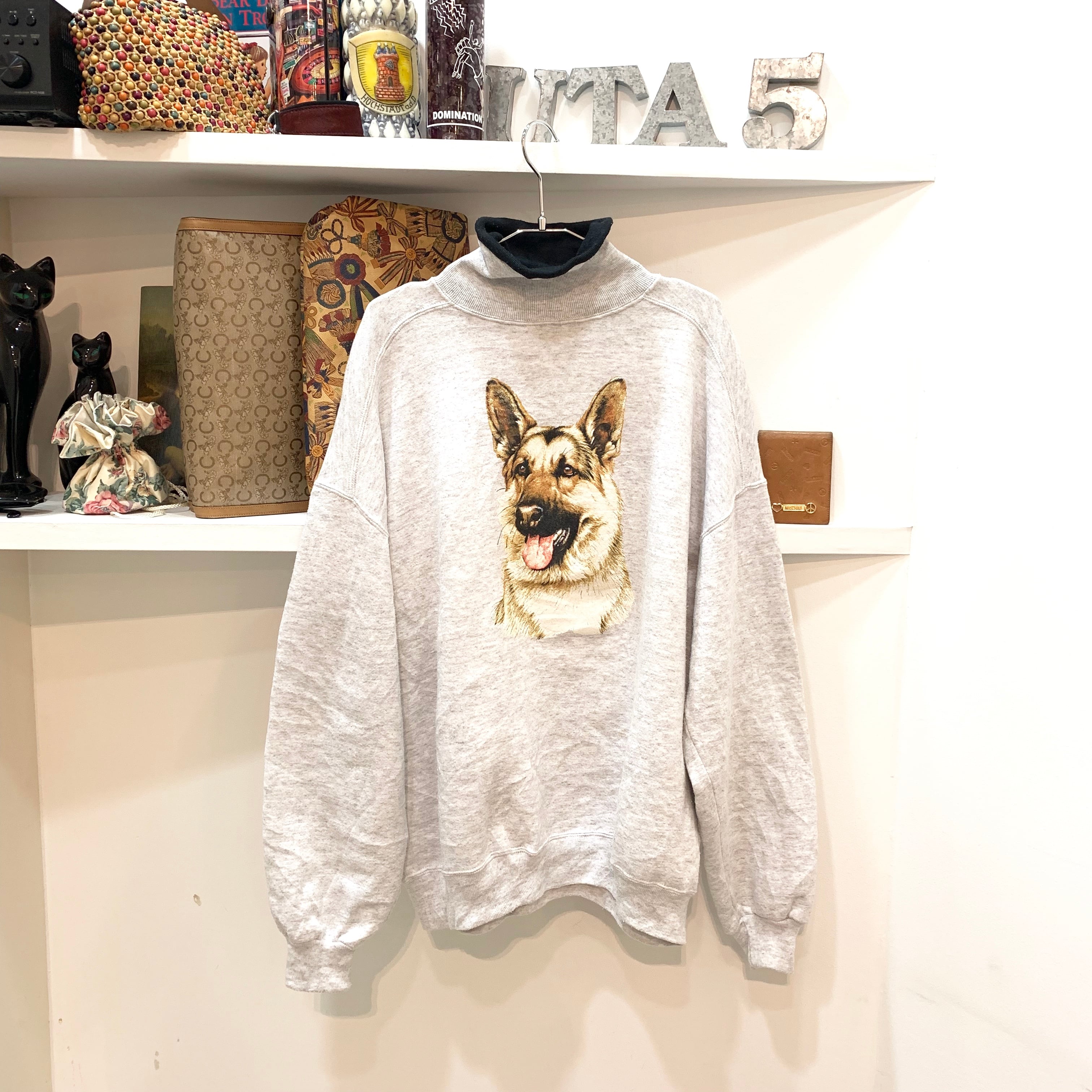 vintage/sweat/gray/スウェット/ハイネック/動物プリント/犬/グレー