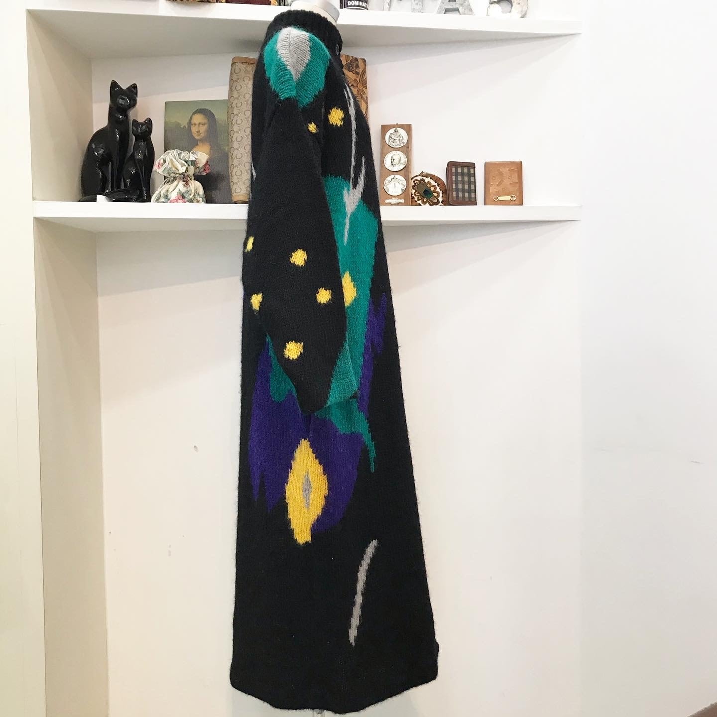 vintage/knit/coat/総柄/ニットコート/ブラック