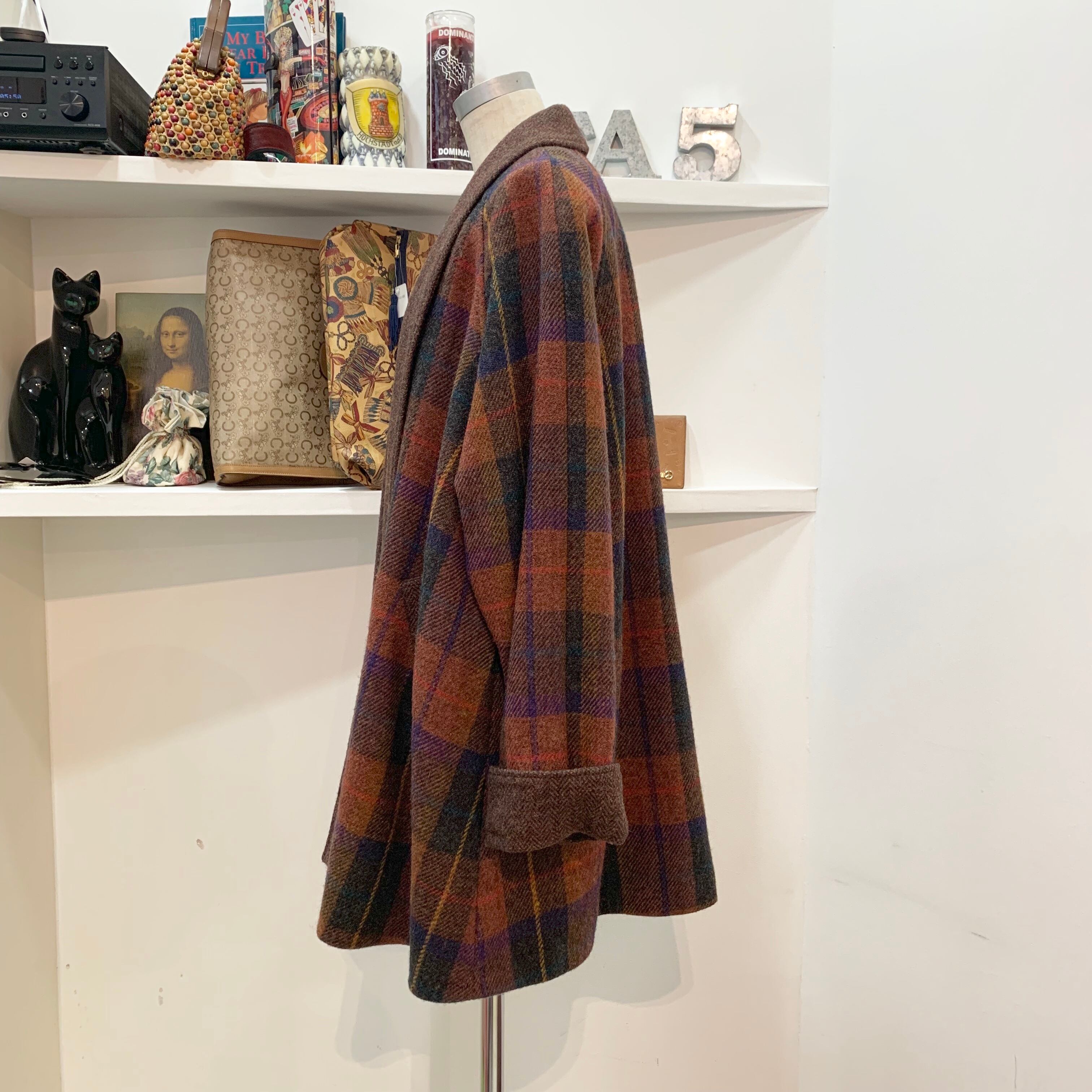 vintage/coat/tweed/ヴィンテージ/コート/アイルランド製/チェック柄/ツイード/ブラウン