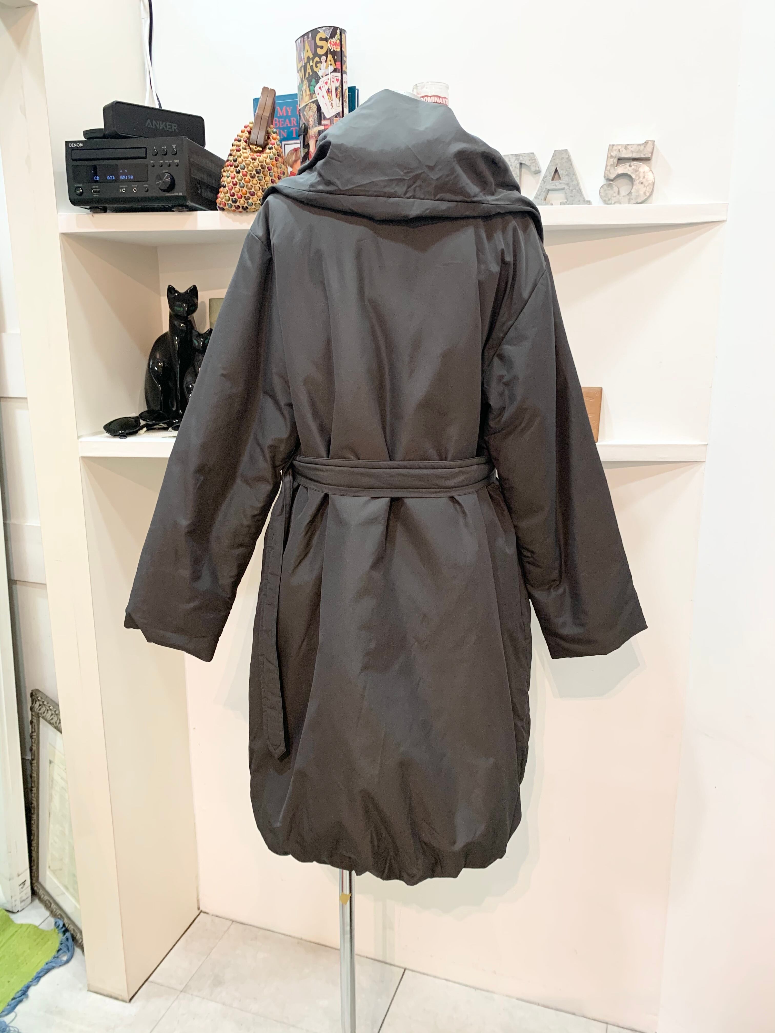 お色はグレー色でベルト付きなのでウエストマークができて着ぶくれして見えずキレイなシルエットになります