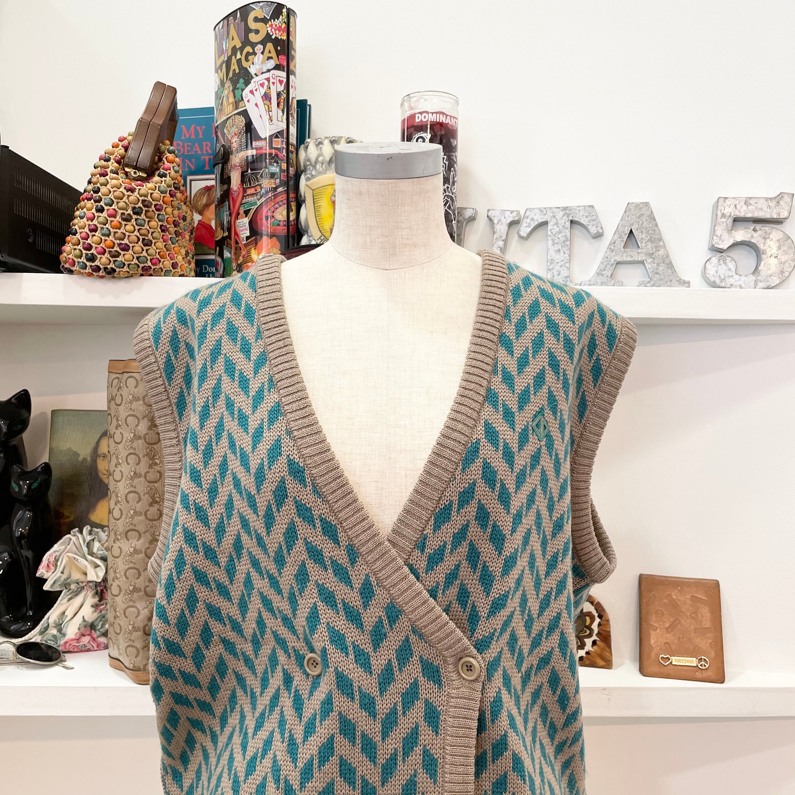 Christian Dior/knit/vest/knitbest/beige/green/M/クリスチャンディオール/ディオール/ニット/ベスト/ニットベスト/ベージュ/緑/Mサイズ