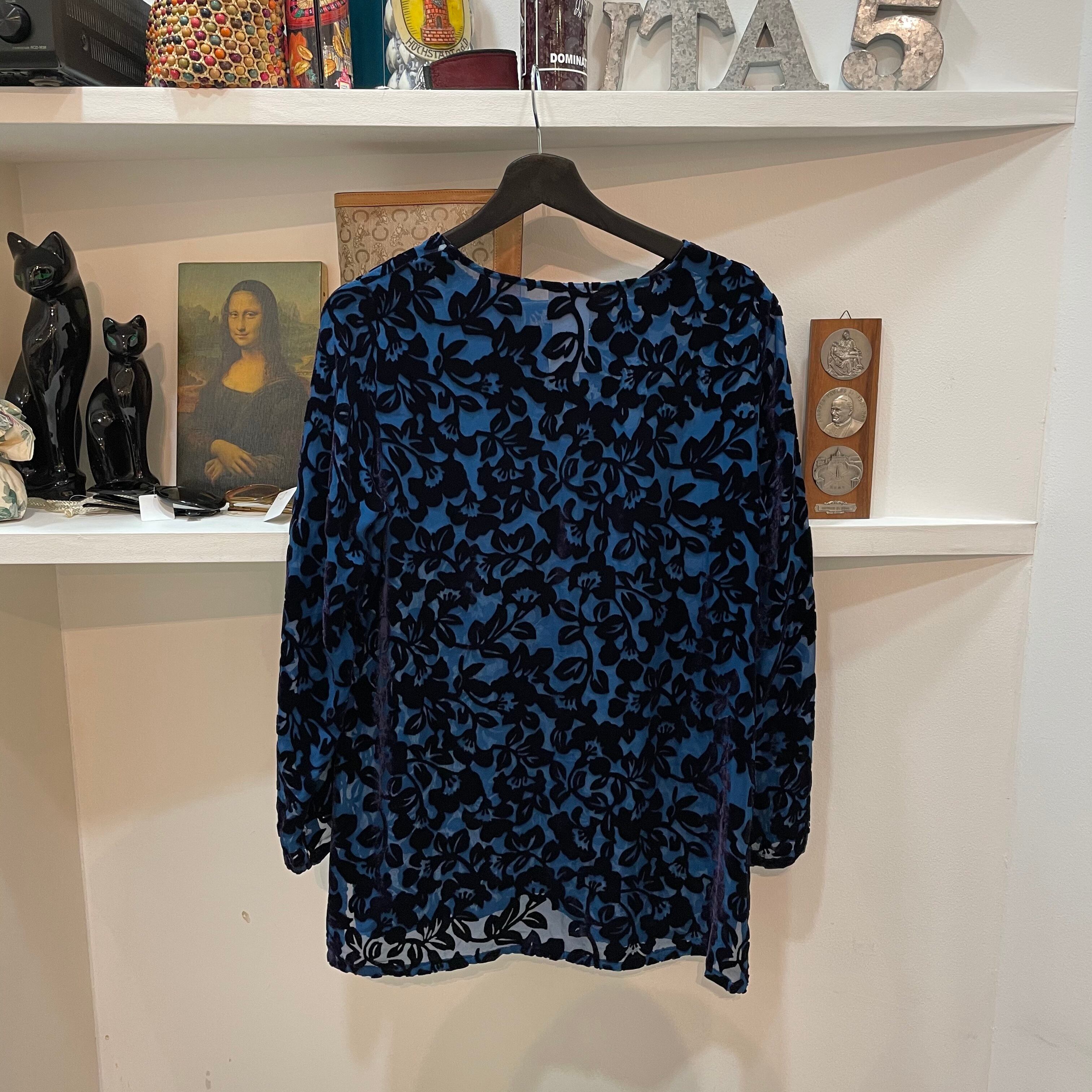 laura ashley/t shirt/Flower/velours/blue/black/ローラアシュレイ/ベロア/青/黒/インナー/tシャツ