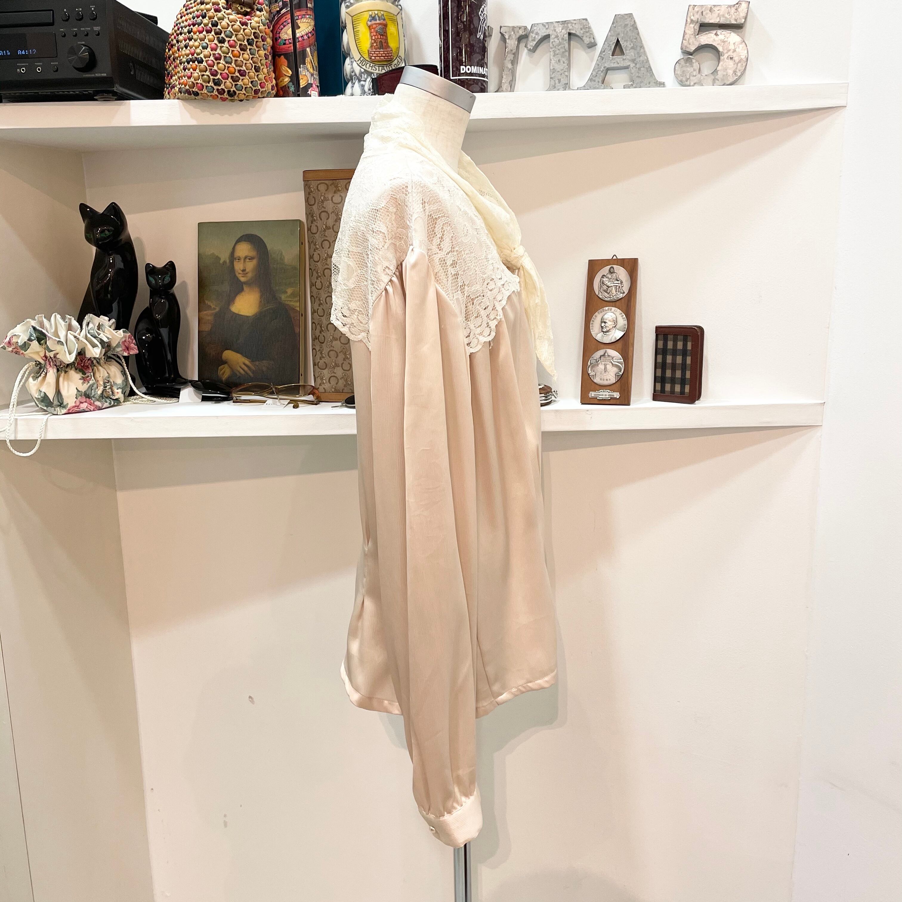 vintage/blouse/frill/race/white/beige/ビンテージ/ヴィンテージ/フリル/ブラウス/レース/白/ベージュ