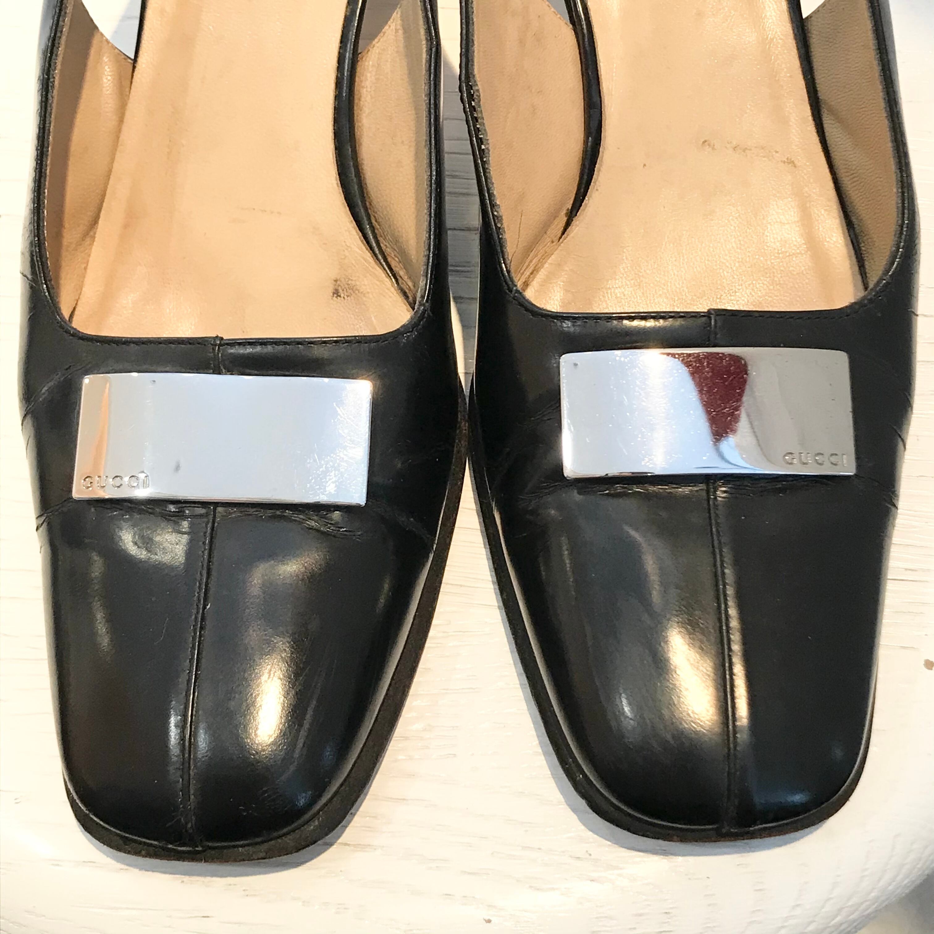 GUCCI/pumps/leather/黒色/サイズ36 1/2/プレート/グッチ/パンプス/レザー