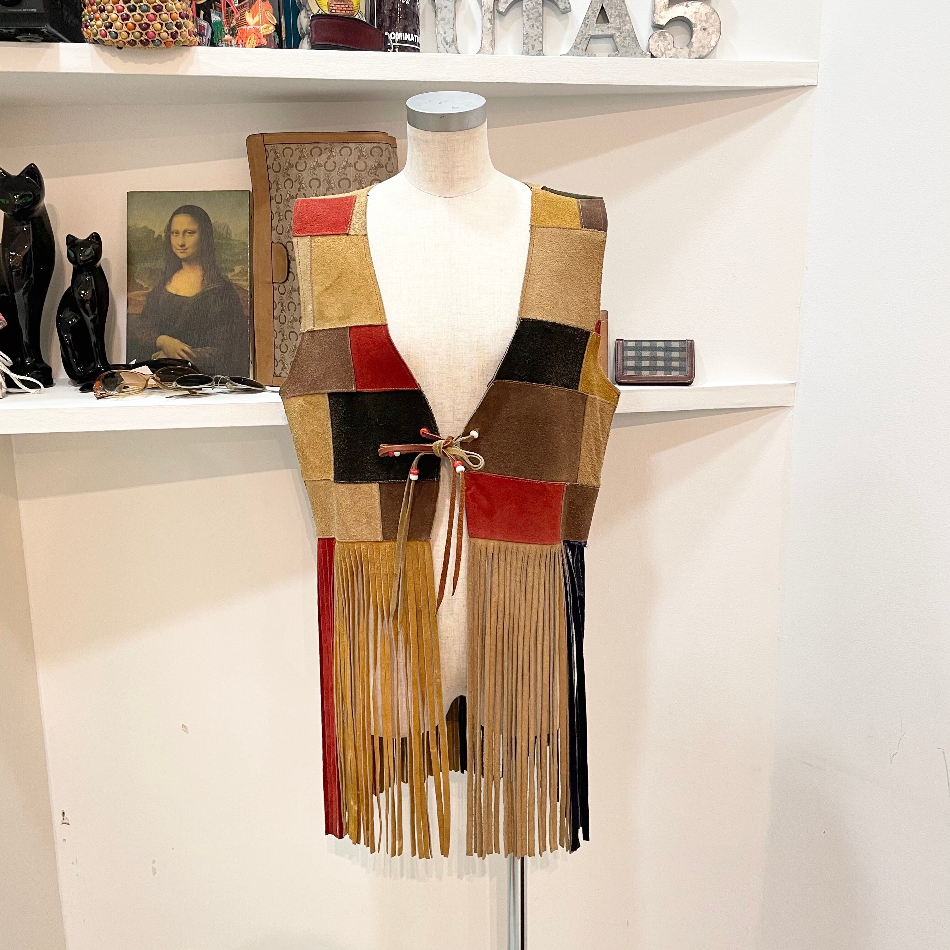vintage/vest/patchwork/fringe/ビンテージ/ヴィンテージ/ベスト/パッチワーク/フリンジ