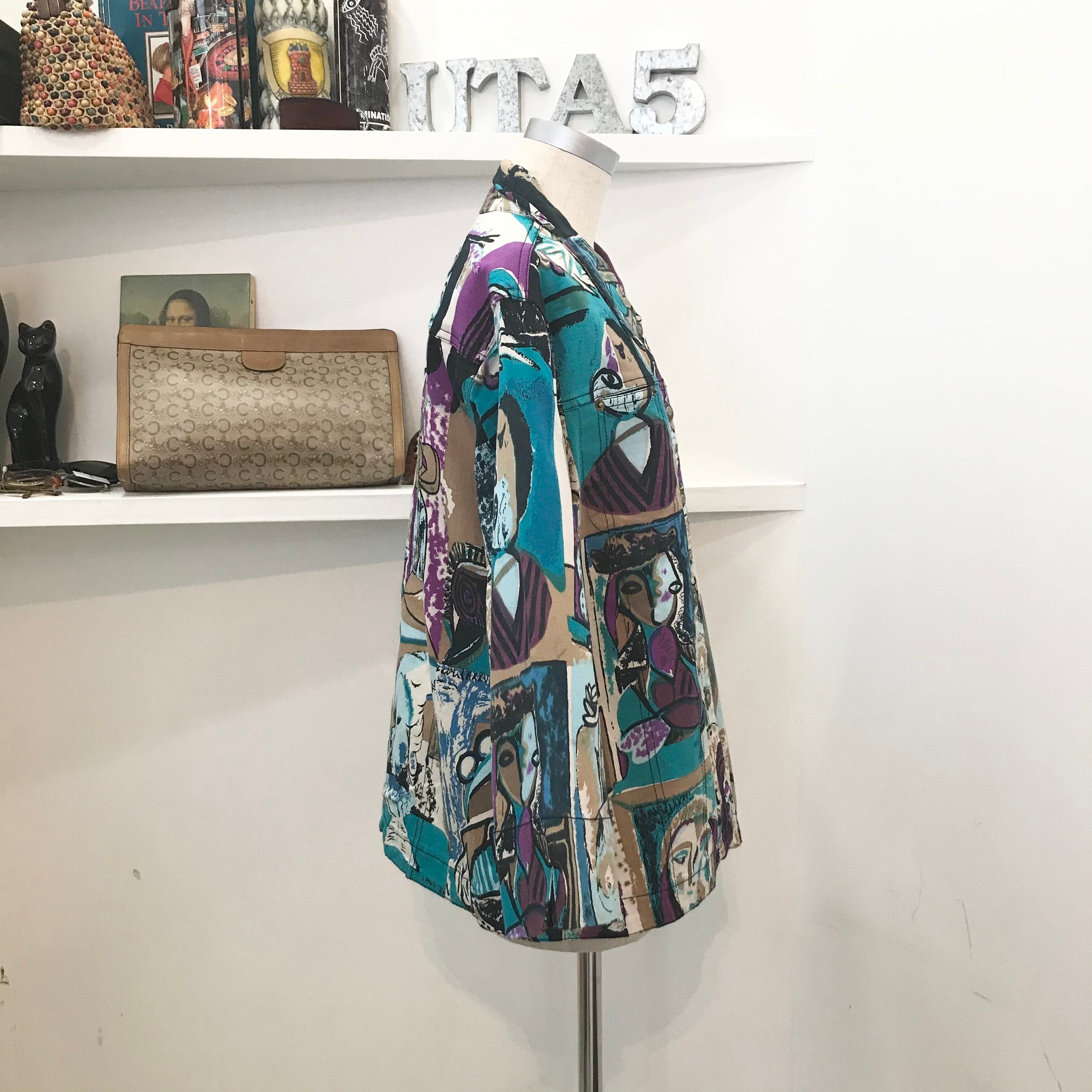 vintage/unique/jacket/ブルー/パープル/サイズXL/ユニーク/ジャケット/ピカソ風