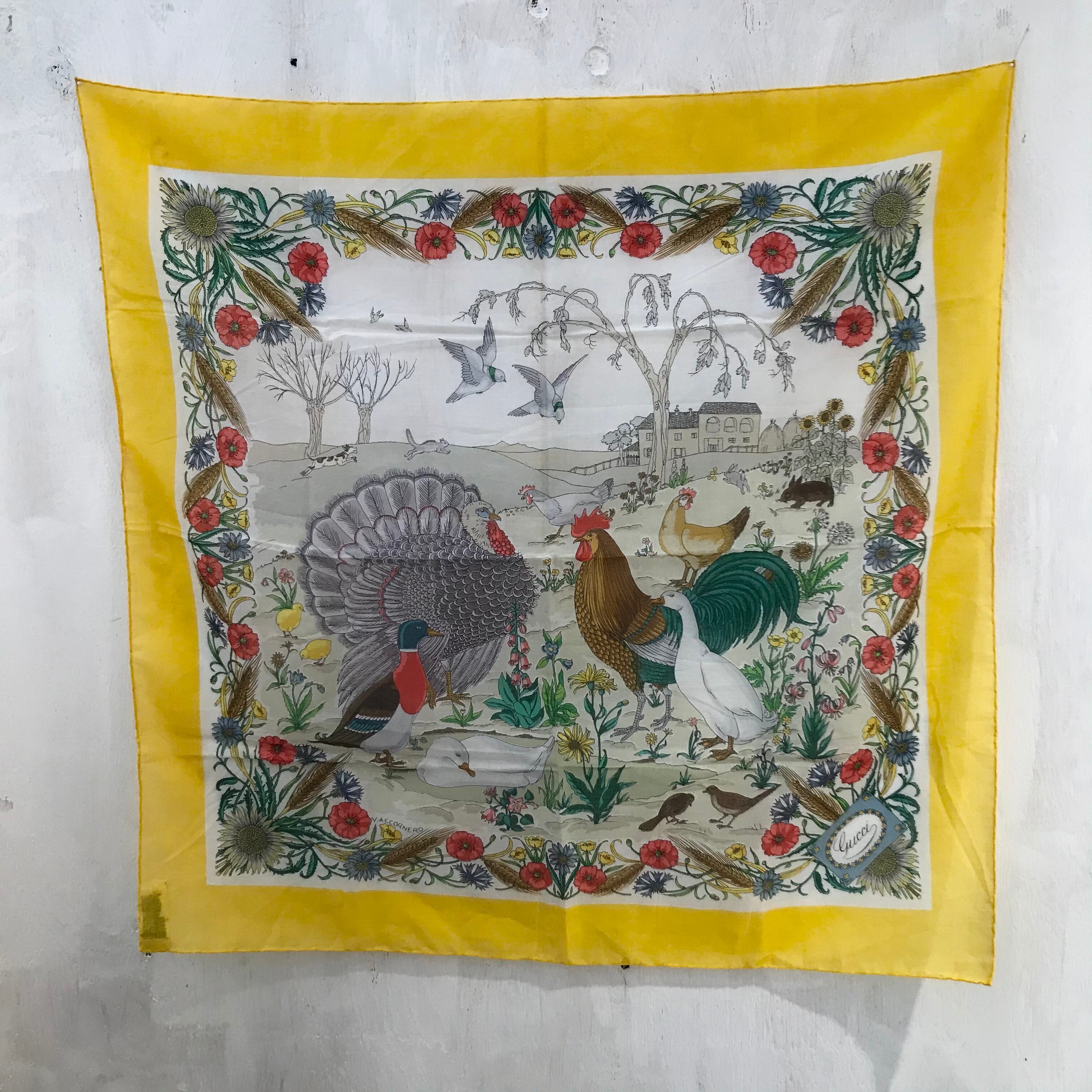 GUCCI/scarf/yellow/鳥柄/コットン100%/グッチ/スカーフ/黄色/イタリア製