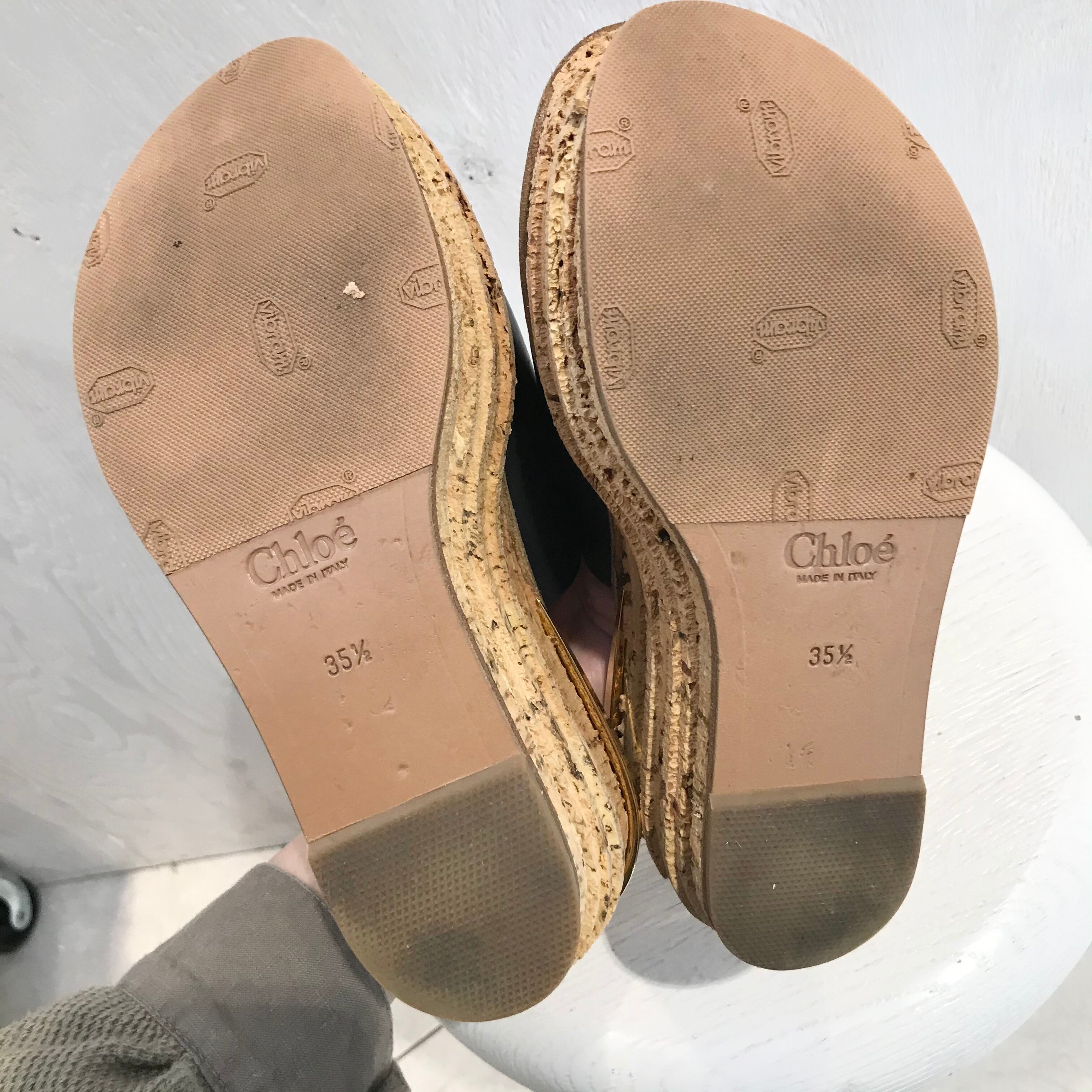 Chloe'/wedgesolesandal/black/wood/クロエ/ウェッジソール/サンダル/黒色/レザー/ウッド系/厚底サンダル