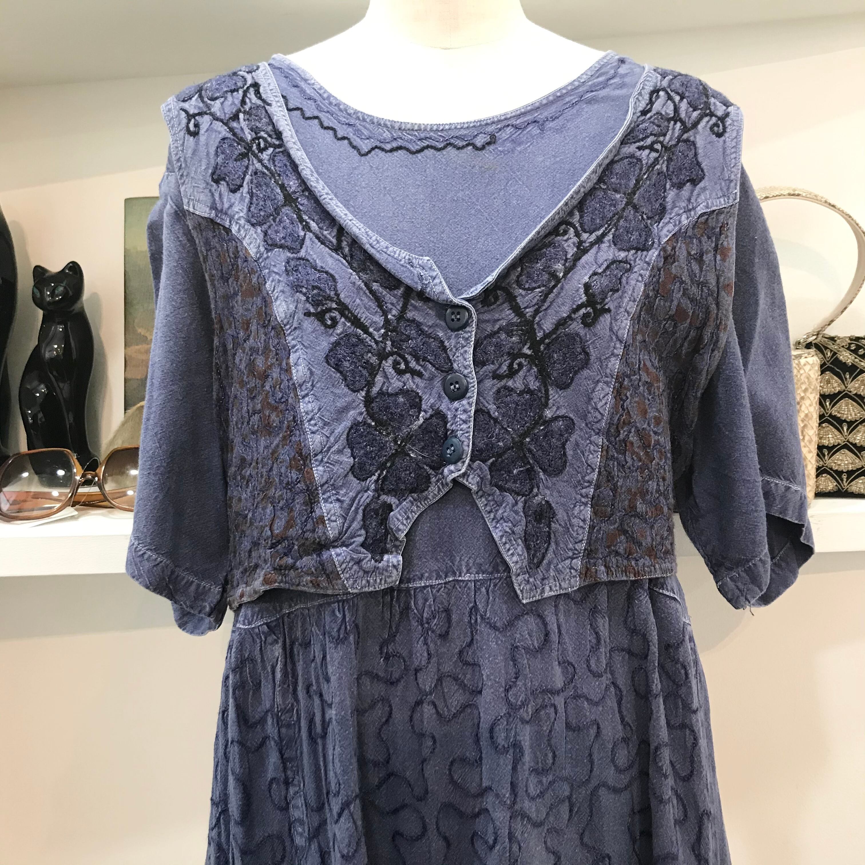 vintage/ethnic/one-piece/花刺繍/ブルー/ワンピース
