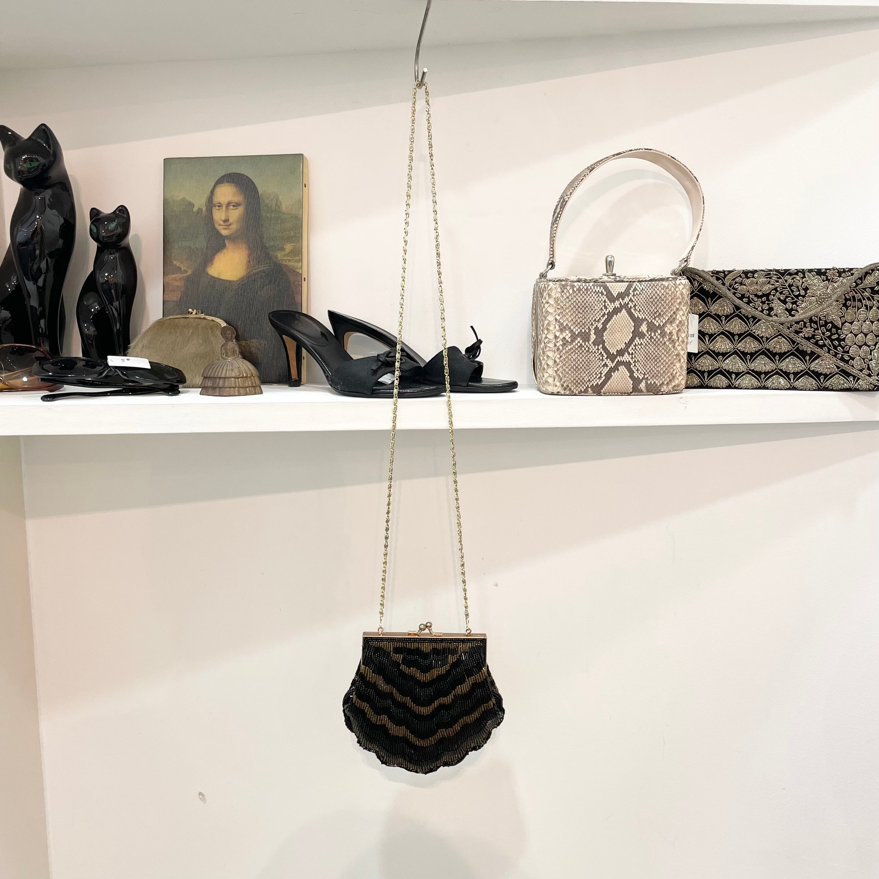 vintage/shoulderbag/bag/black/gold/bees/ビンテージ/ヴィンテージ/ショルダーバッグ/ビーズ/がま口/黒/金
