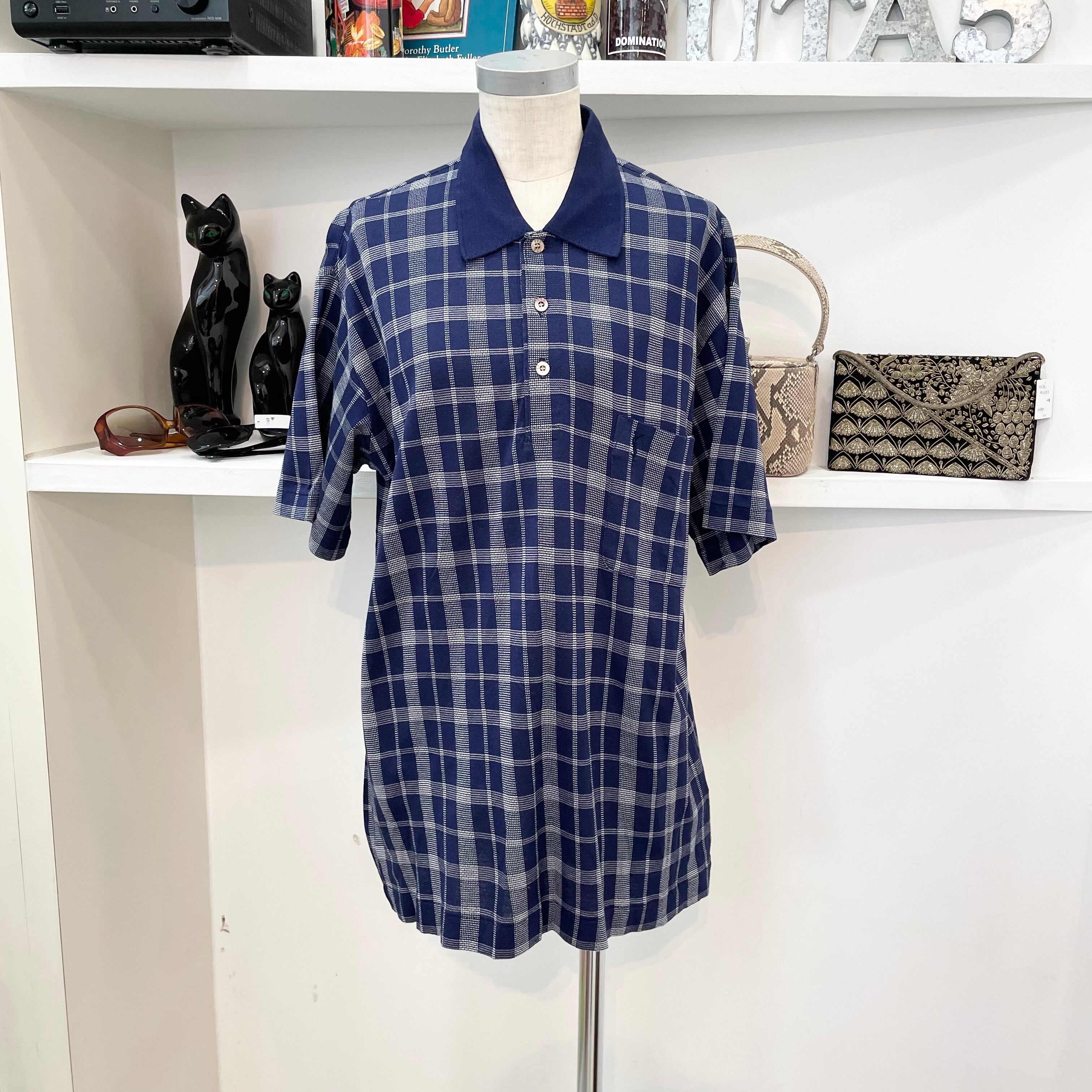 ysl/poroshirt/tops/check/nevy/イヴサンローラン/サンローラン/ポロシャツ/シャツ/半袖/紺/チェック