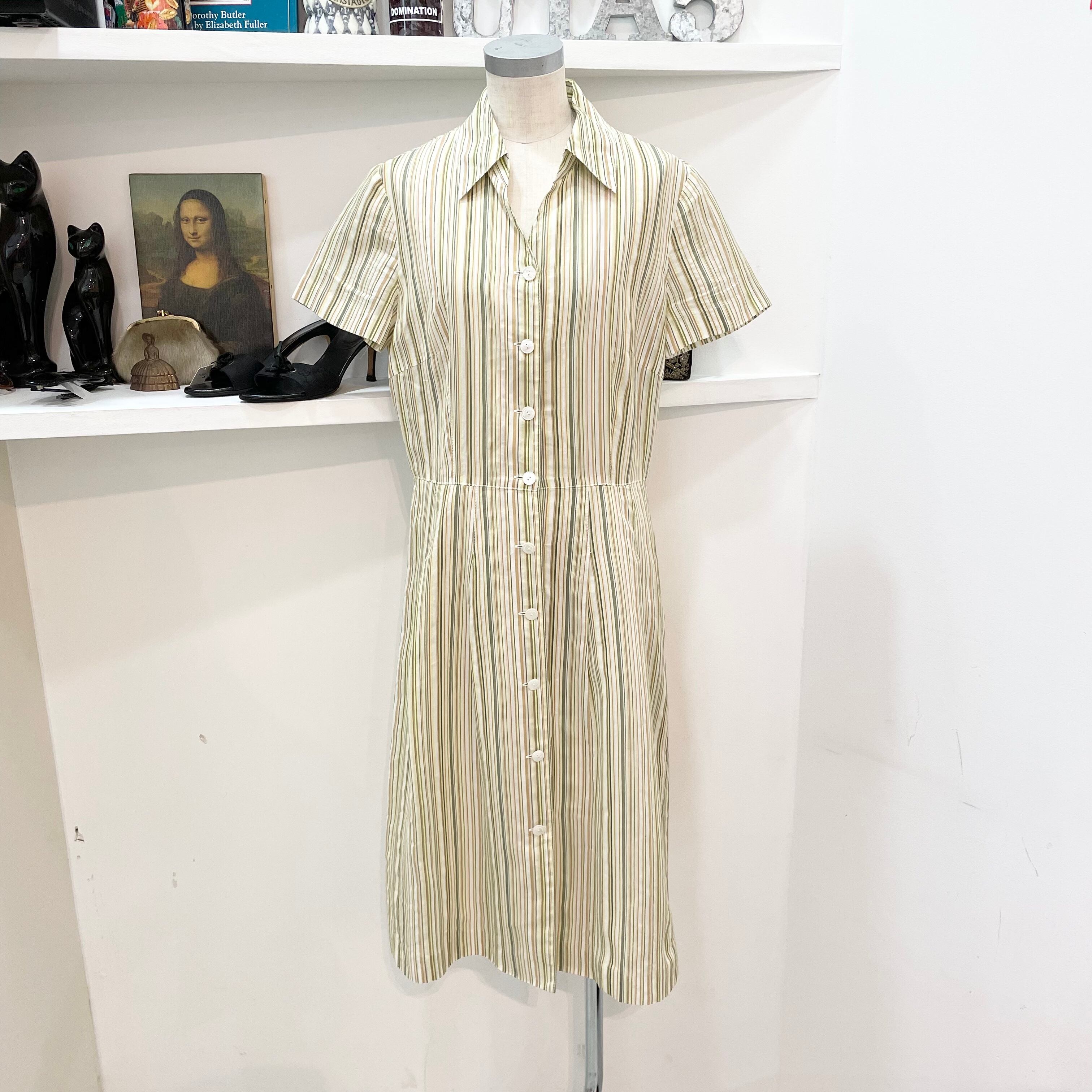 aquascutum/one-piece/Stripe/yellow/pink/green/アクアスキュータム/ワンピース/ストライプ/半袖/黄色/ピンク/緑