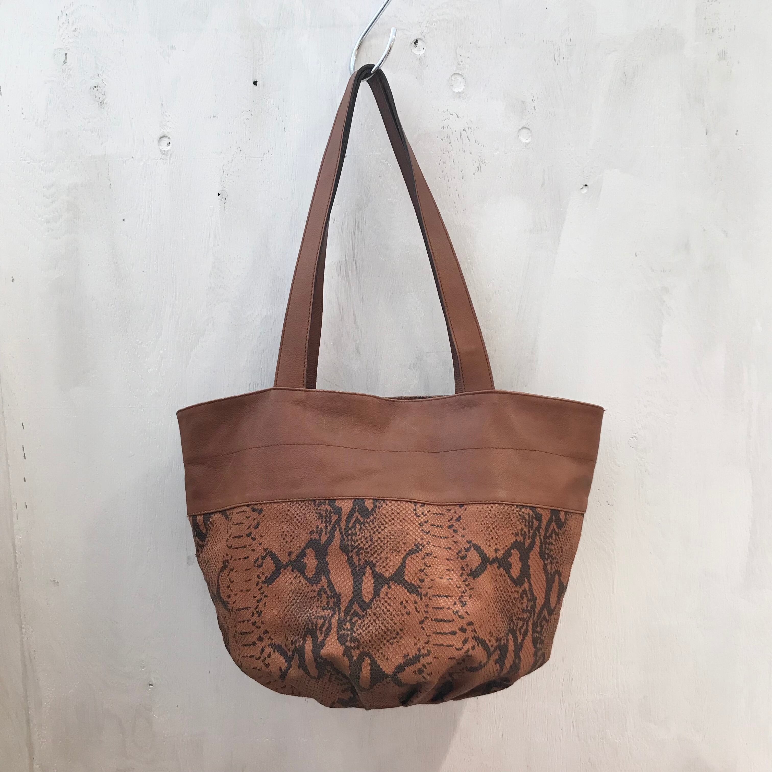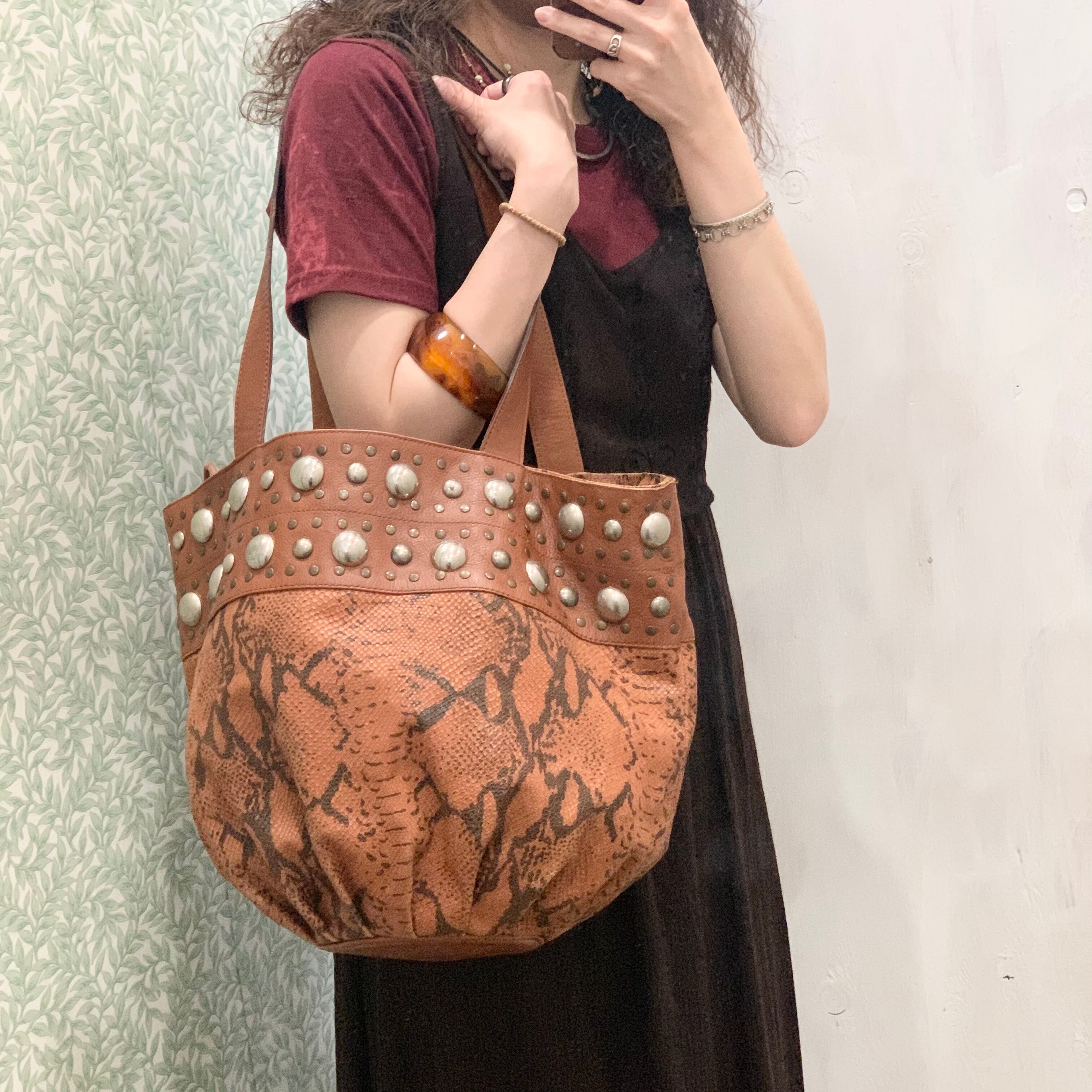 vintage/leather/brown/to-tobag/スタッズ付き/レザー/バッグ/トートバッグ/茶色/蛇