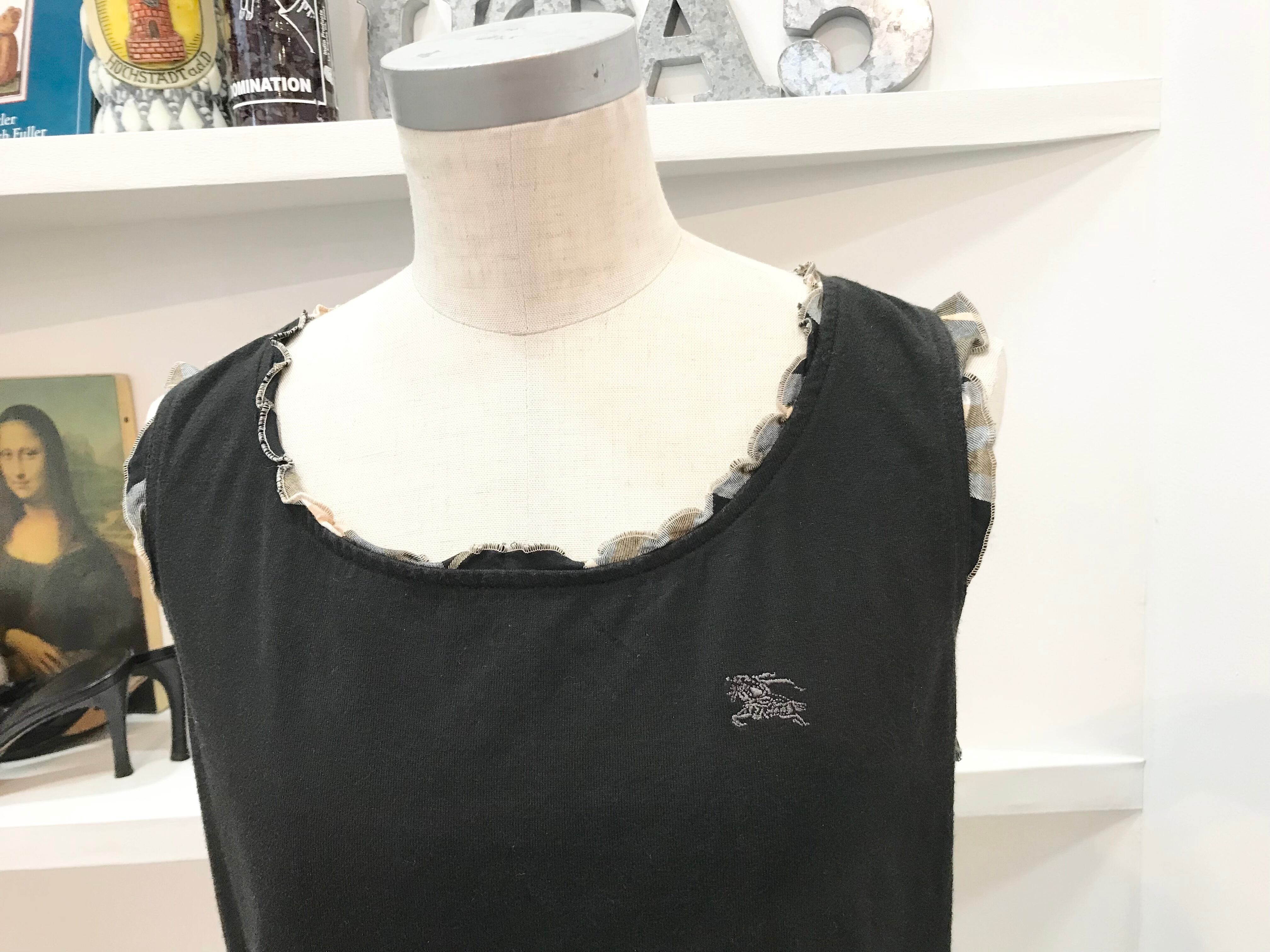 Burberrytanktopblackfrillバーバリータンクトップ黒色サイズ38/フリル付き